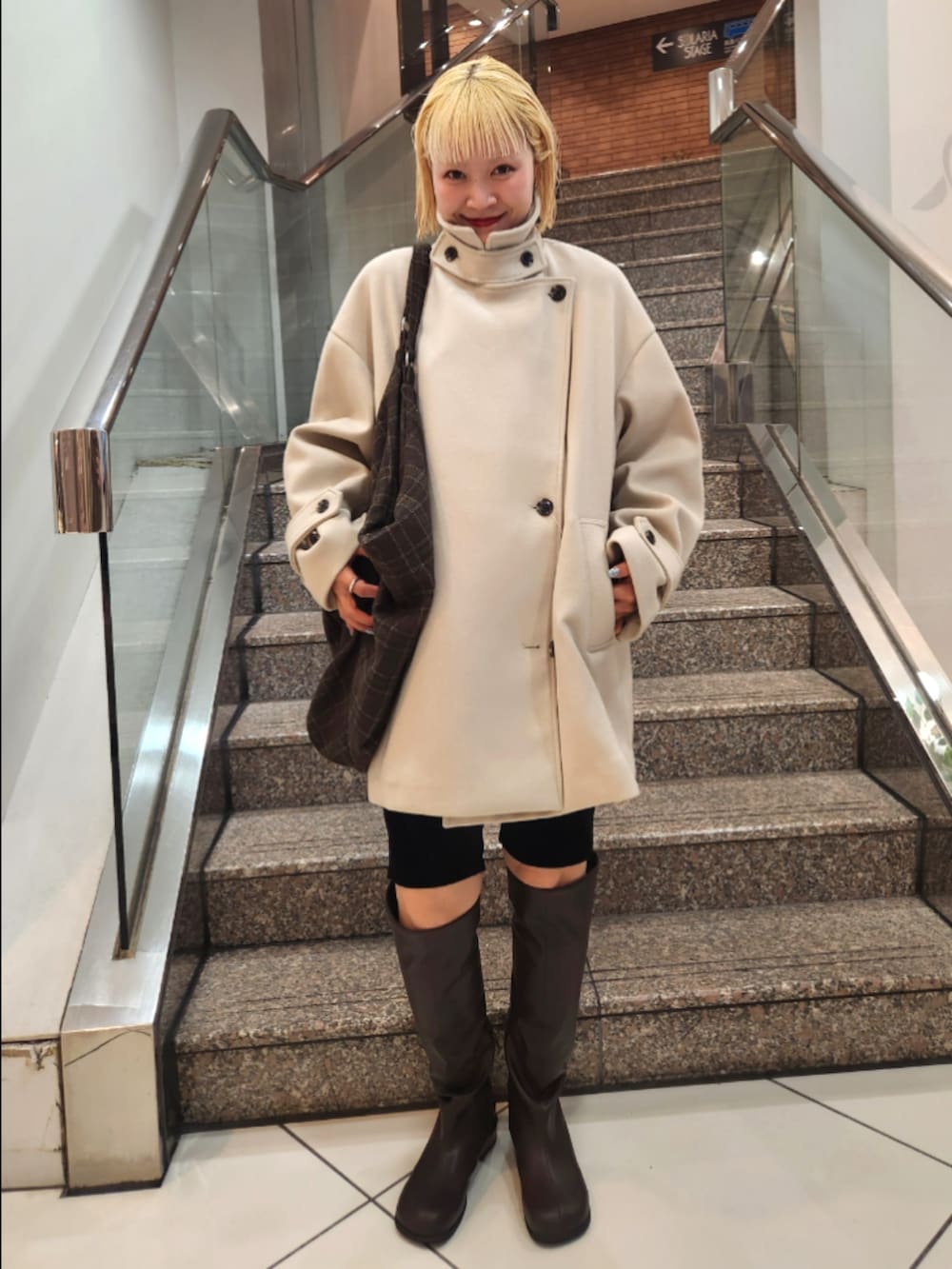 コートもミドル丈なので、ロングブーツと合わせて大人っぽさもプラス🤭