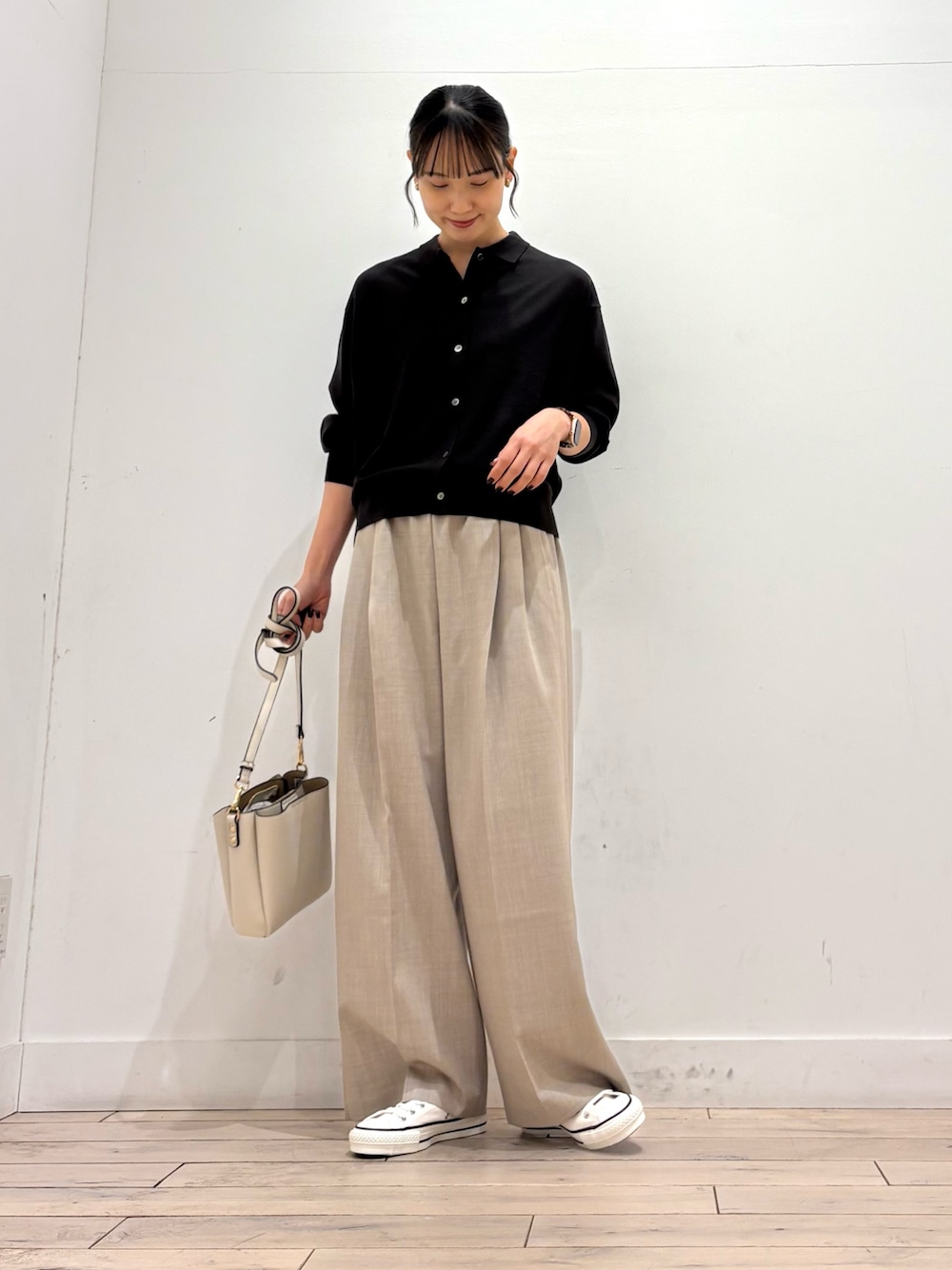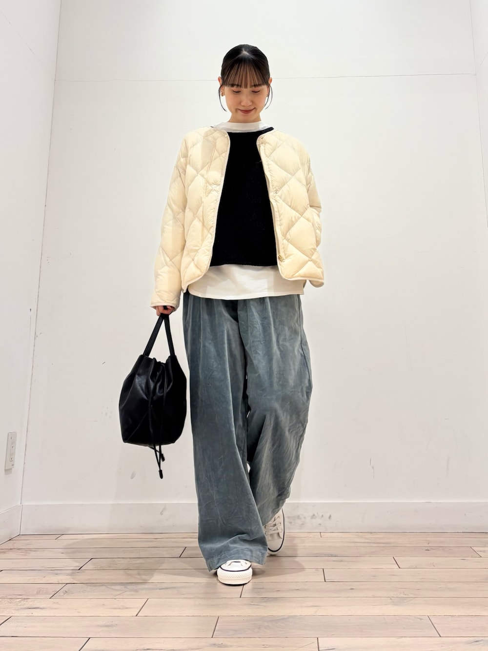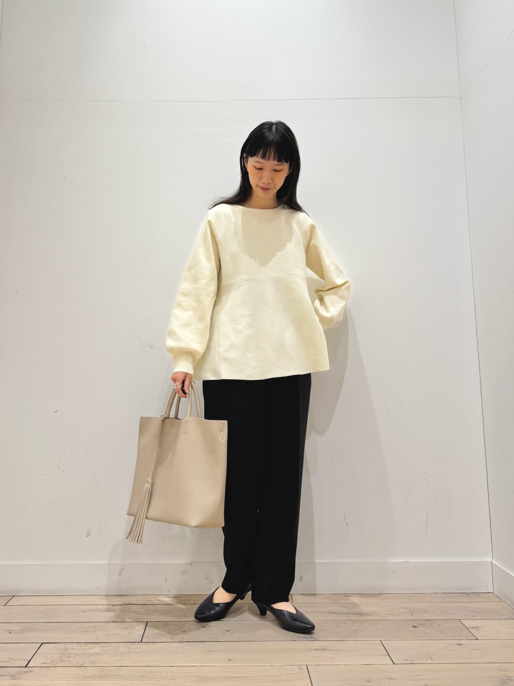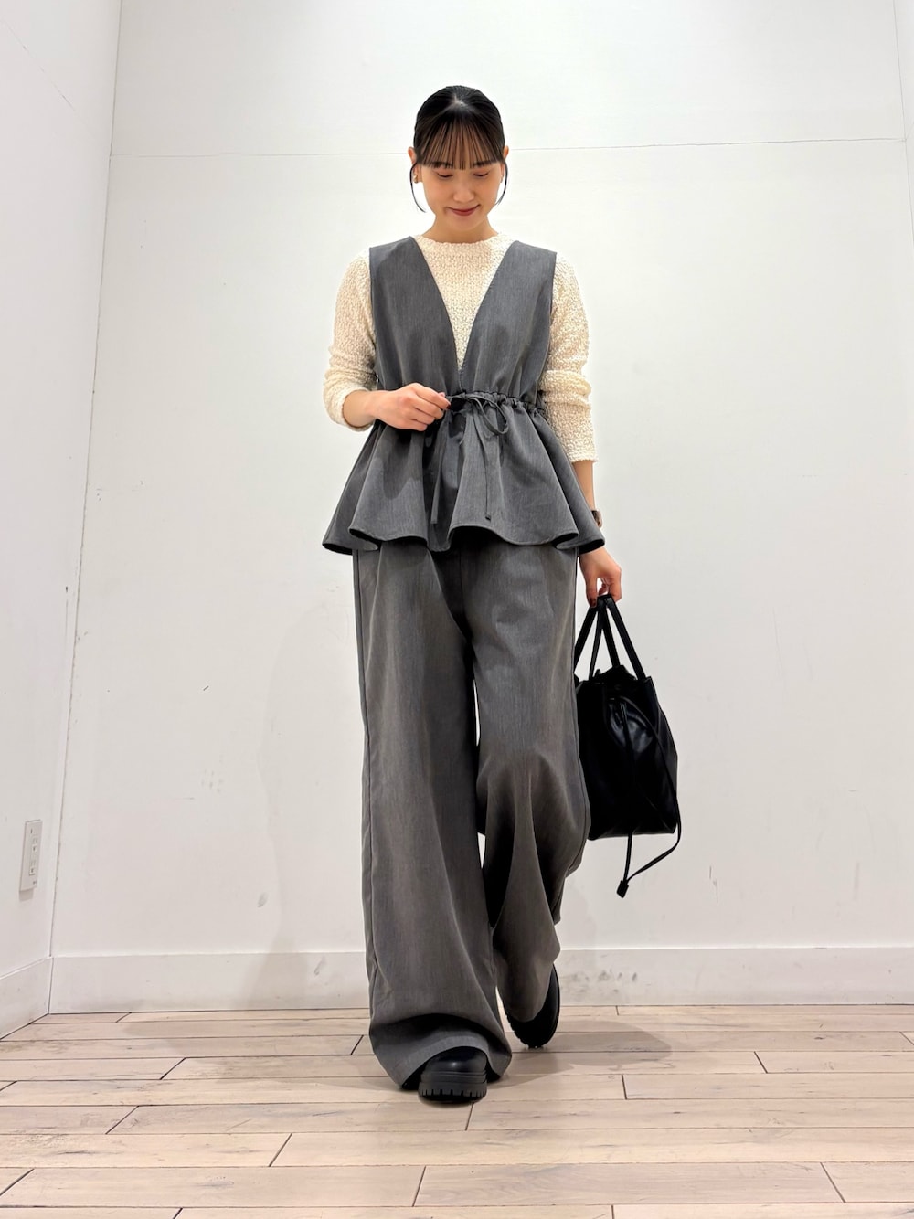 ウエストドロストデザインで、シルエットを自分好みにできます。もともとゆとりがあり、し体型カバーもしてくれます◎