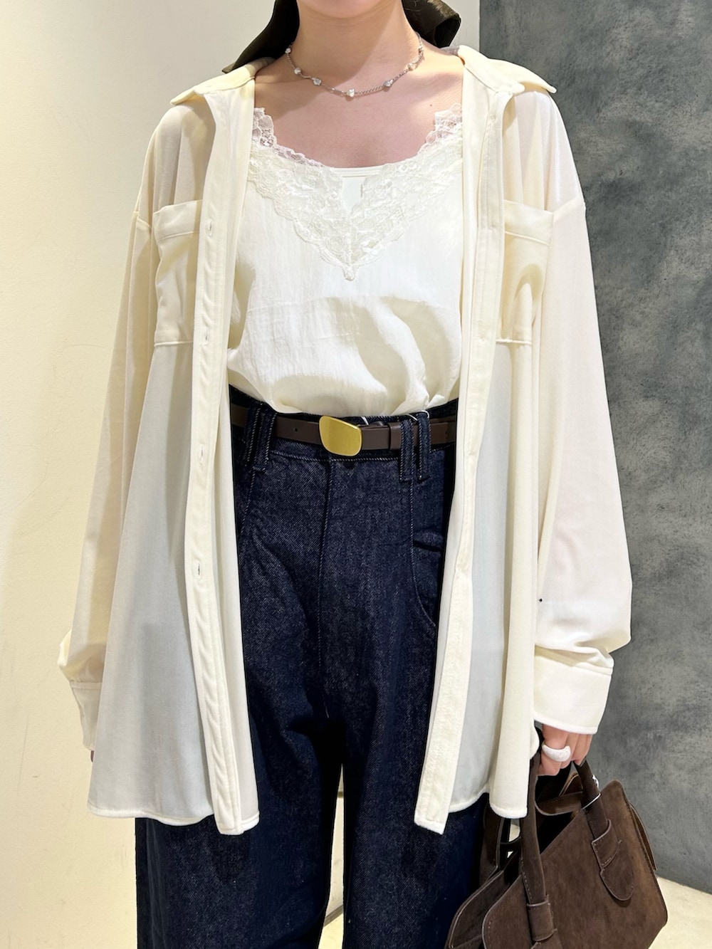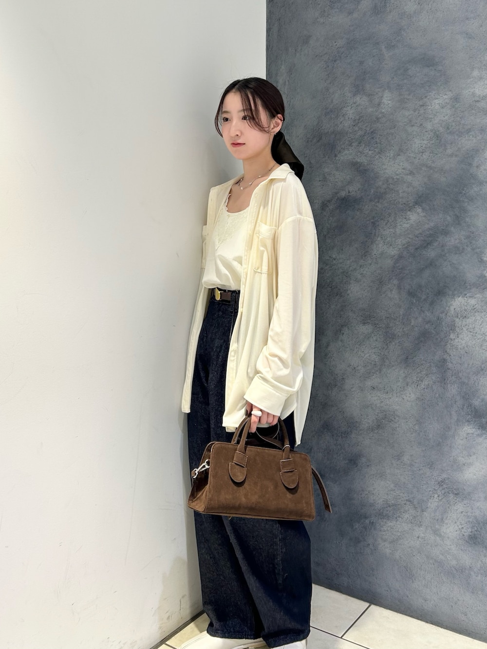 デニムは太すぎないストレートで、トップスの柔らかさを引き締めています♪