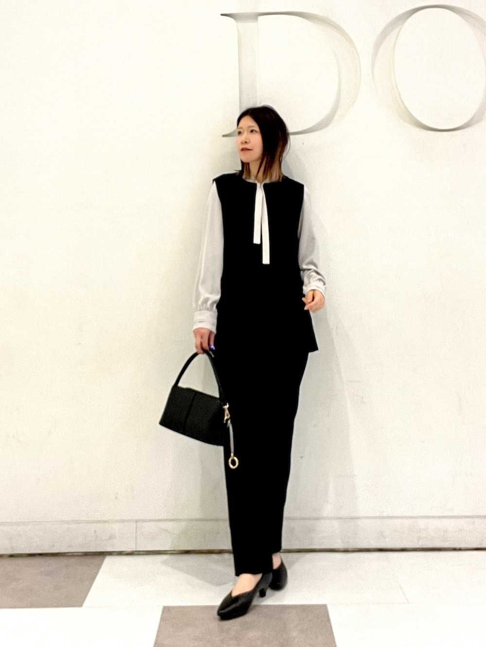 ブラウスはボウタイ風のデザインになっていてジャケットやベストのインナーにオススメです◎ベストは昨年も人気のアイテムでインナーのデザインで雰囲気を変えられるので着回しが効きます👌🏻