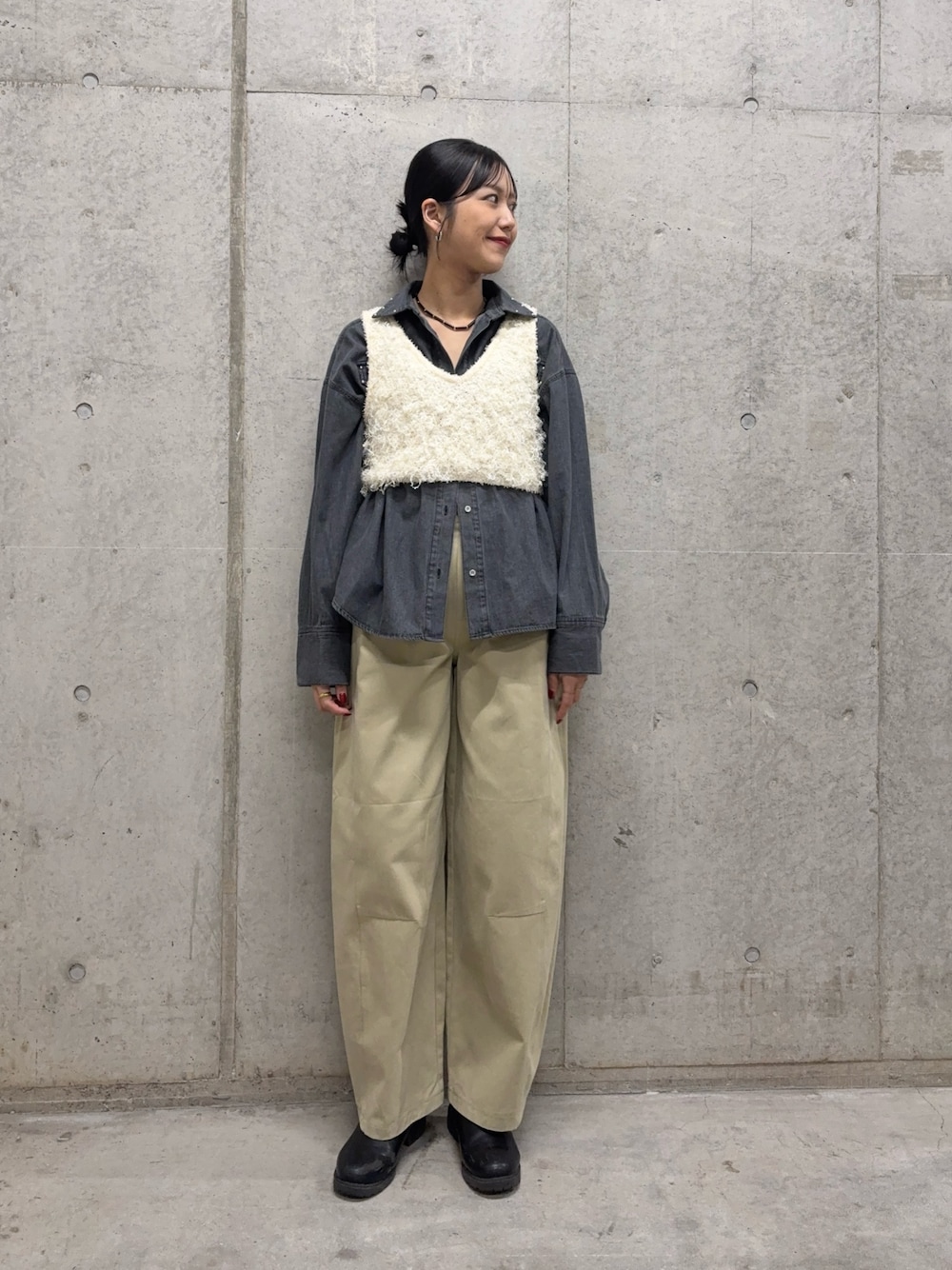 ニットベストは着丈長めでトレンド感◎