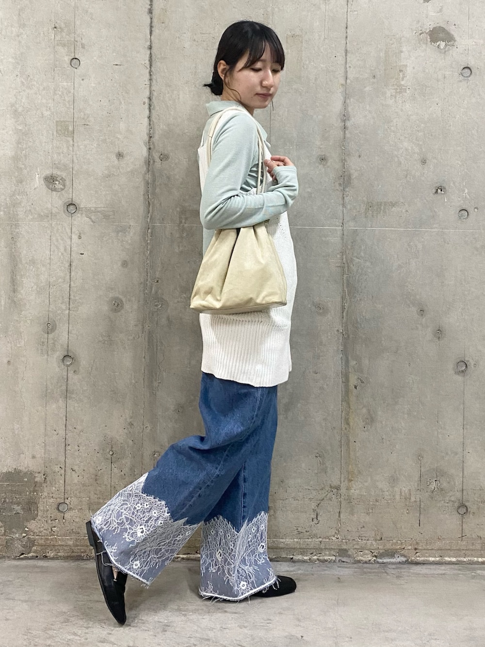 SENSE OF PLACEレースドッキングデニムパンツ- 着用カラー: