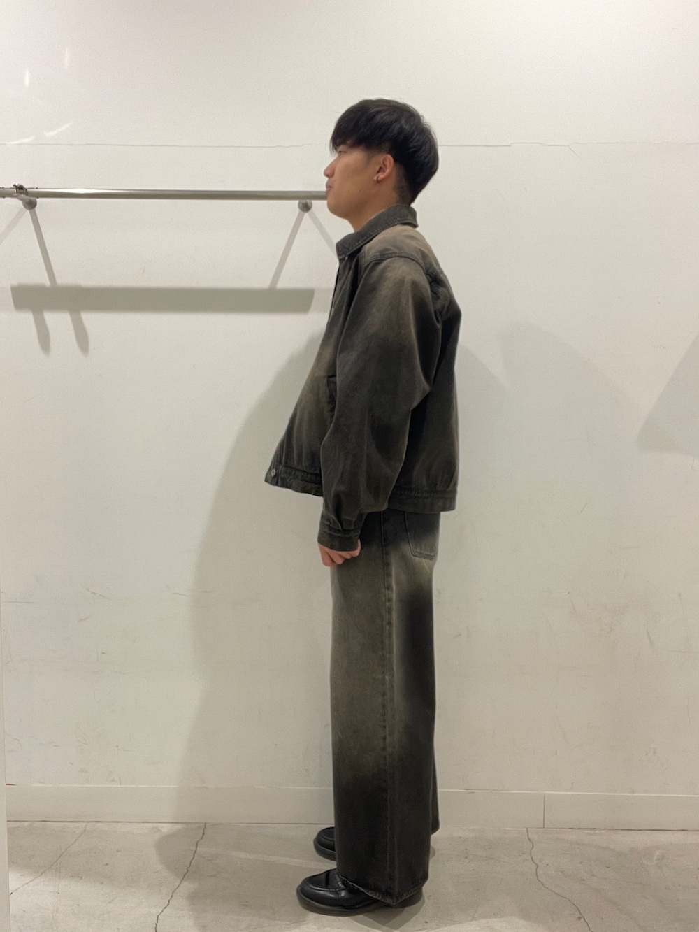 黒のデニムブルゾンとデニムパンツをセットアップで!