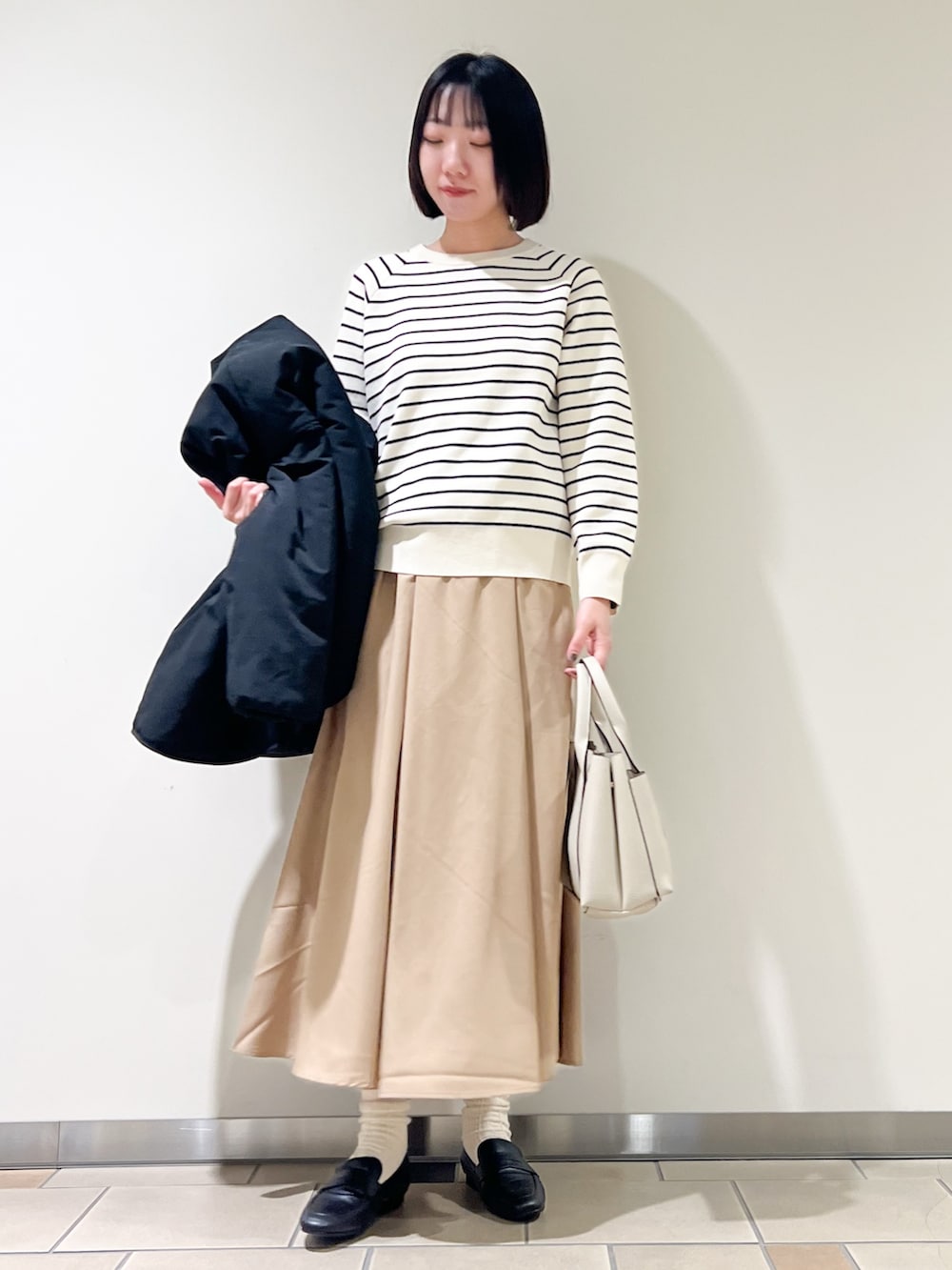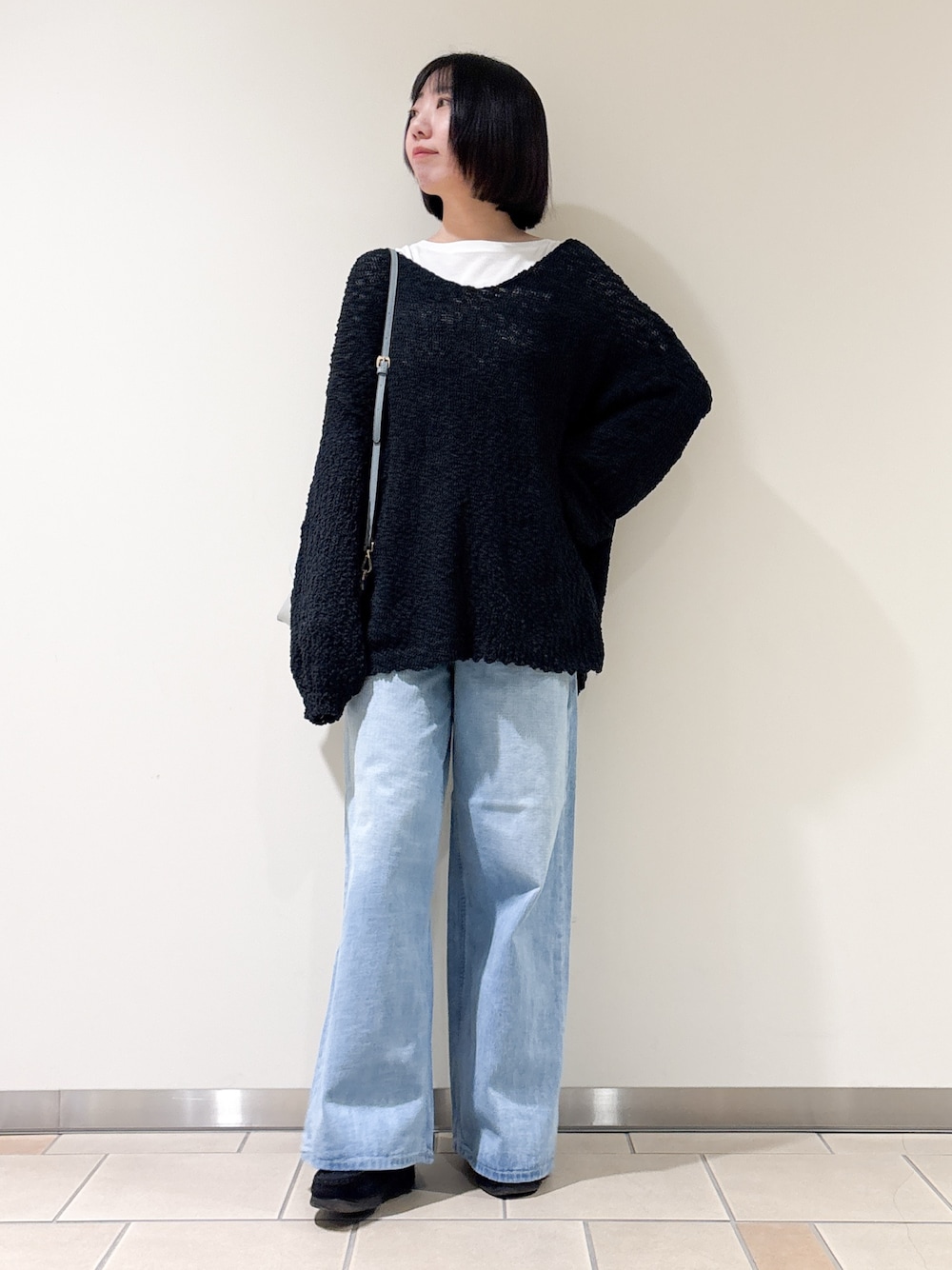 ニットはスウェットライクなので春先まで活躍。程よくゆったりしているので体のラインは拾いません!