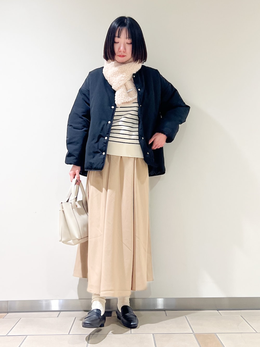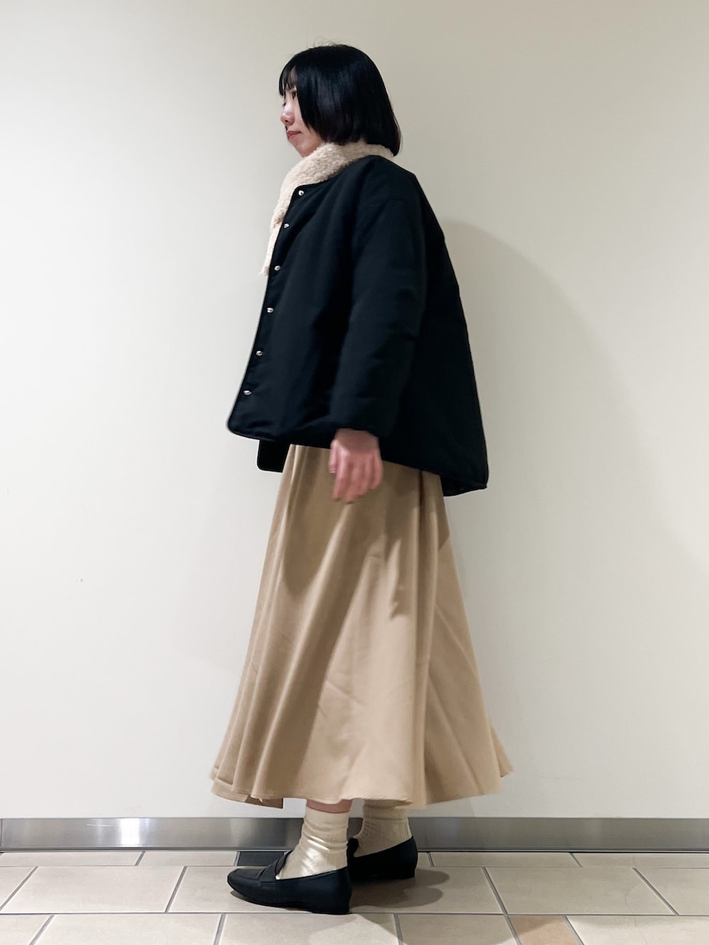 アウターはテントラインが腰回りをカバーしてくれて女性らしい印象に見せてくれる嬉しい一枚です^^