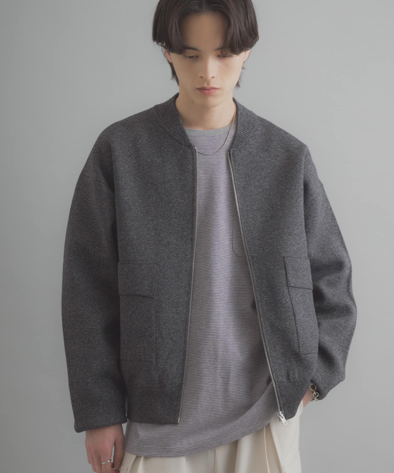 程よい肉厚感とハリのあるニット生地で秋〜春のロングシーズン使えるニットブルゾン!