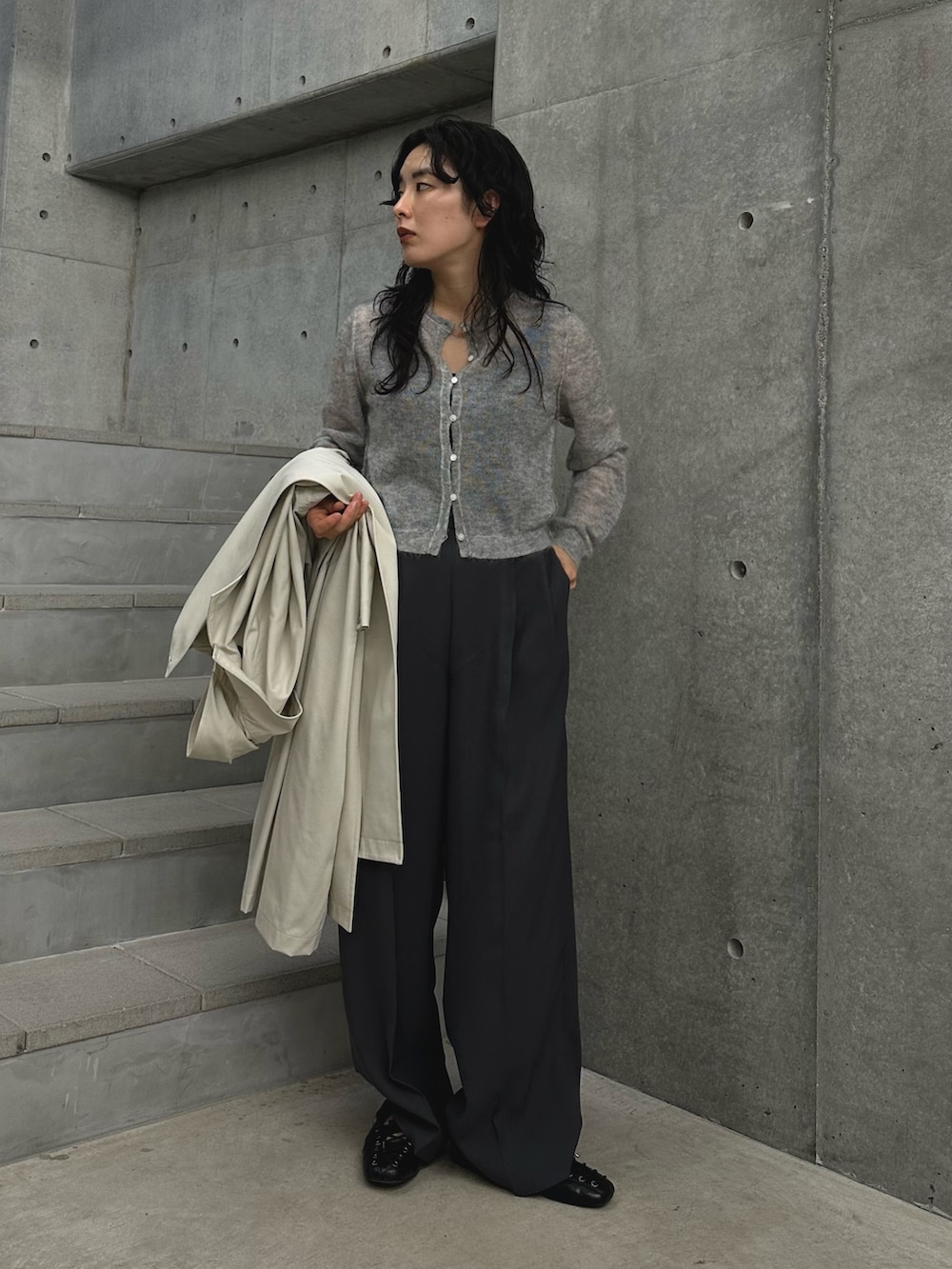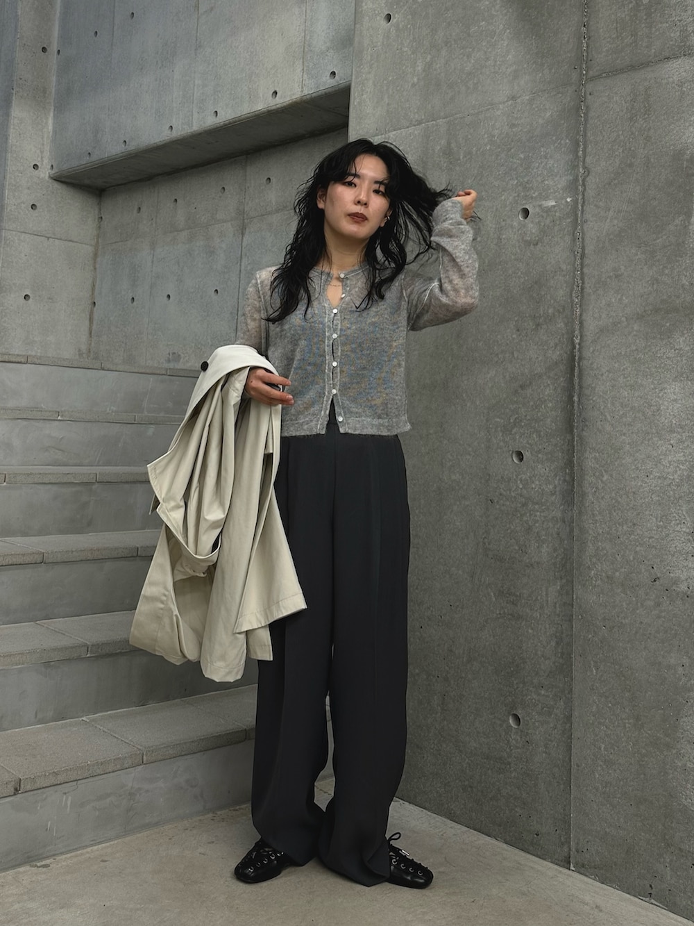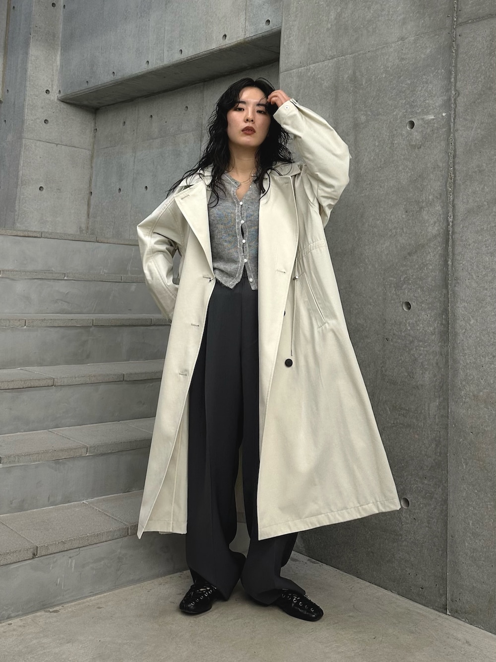 トレンチは着心地の軽い化繊素材なので、オーバーサイズにチョイスしていただいても、重さの負担なく、お出かけの時についつい手に取ってしまう軽やかさ。