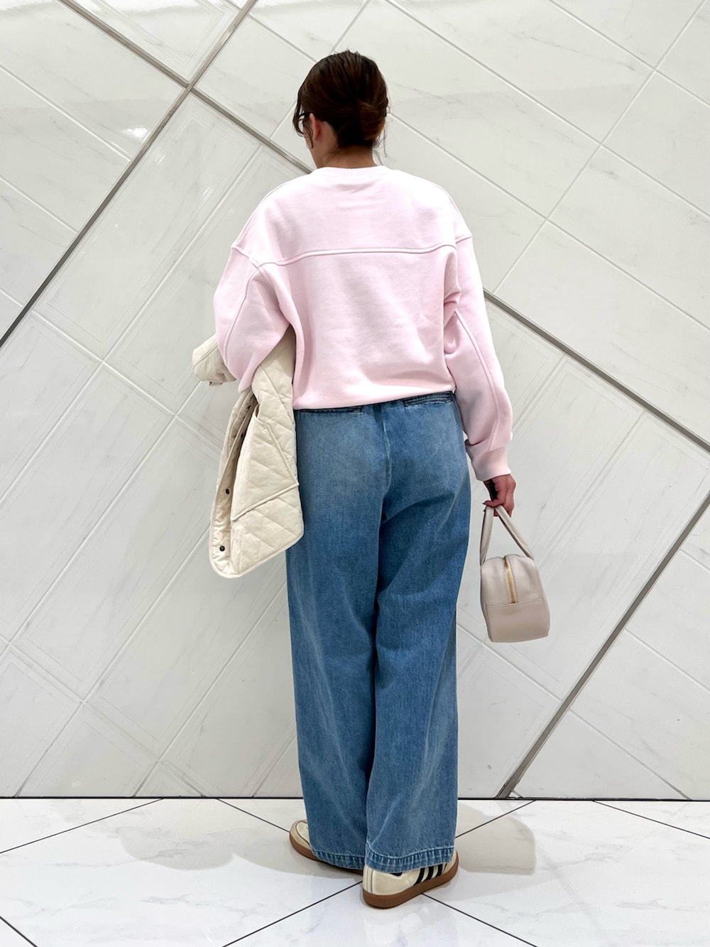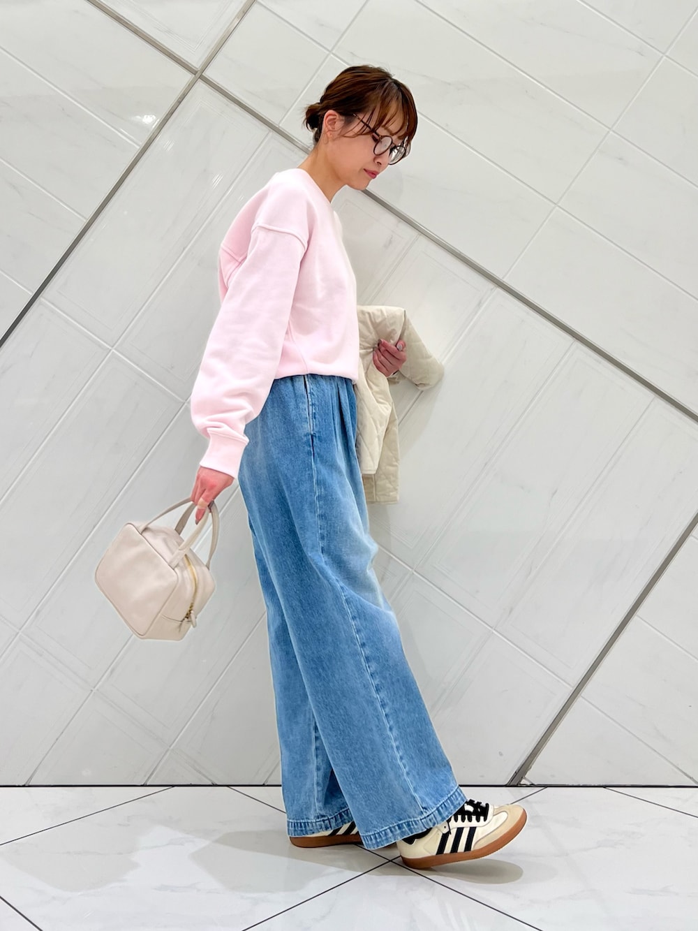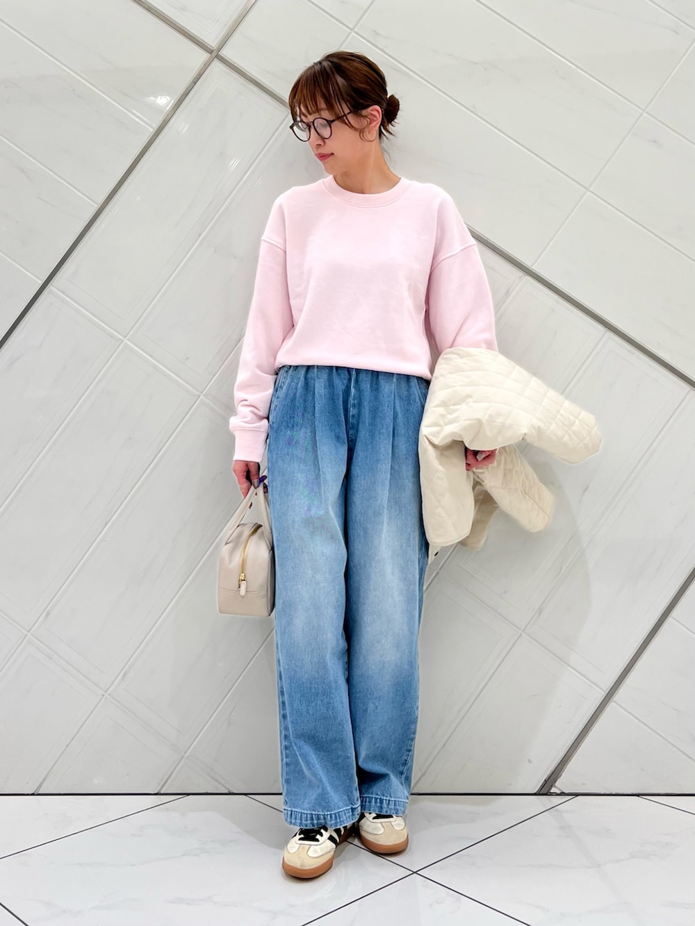 ウエストゴムで楽な穿き心地のデニムパンツは
