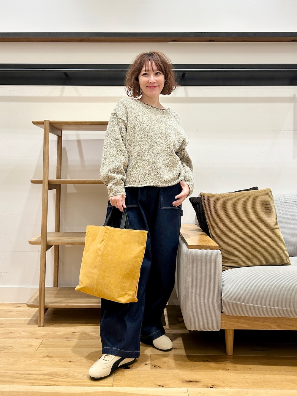 結構ゆったりした太さですが、ストレートシルエットで案外すっきり見えが叶います。
