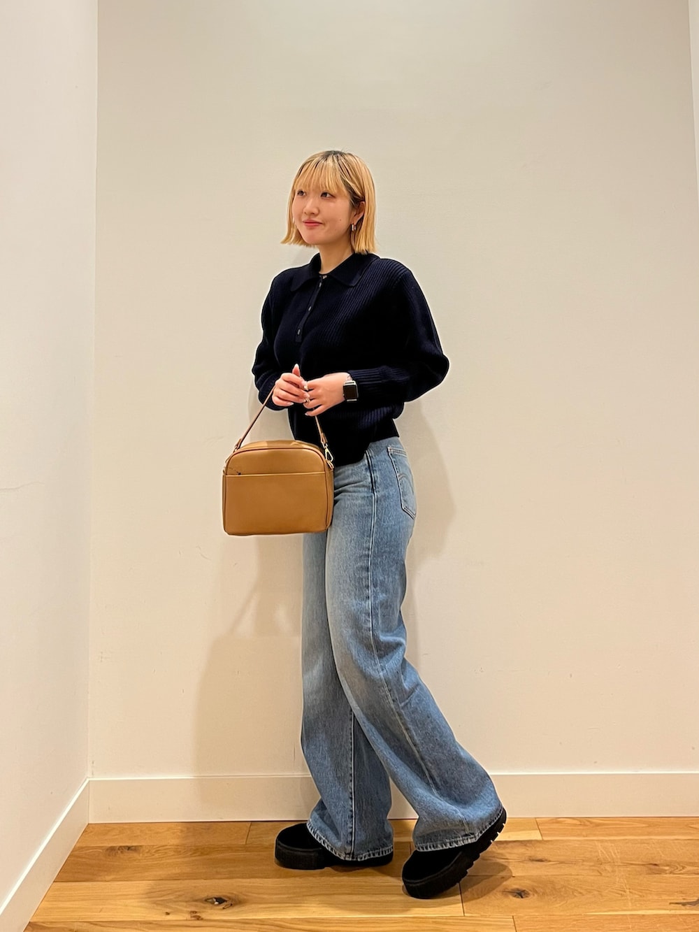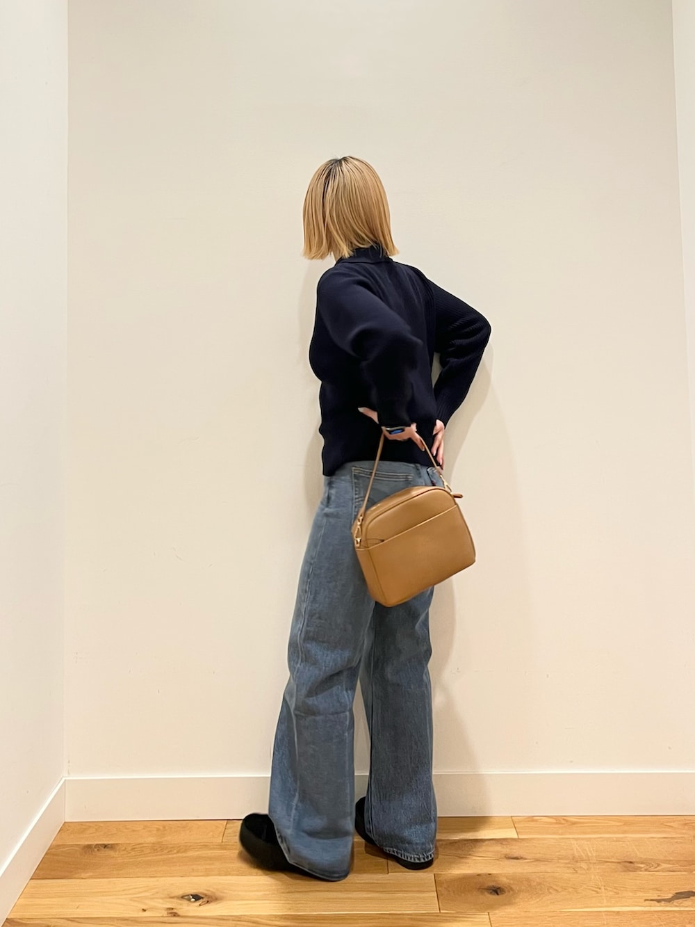 デニムからスカートまで合わせやすく、一枚で今っぽい雰囲気に仕上がる優秀なニットです。
