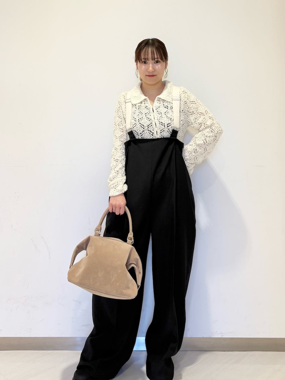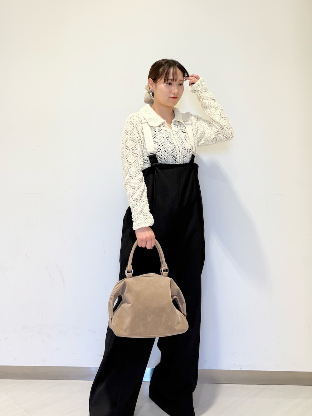 カジュアルなサロペットに、あえて甘めなレースを合わせることで大人っぽくキレイめな印象になるように意識して組んでみました〜✨