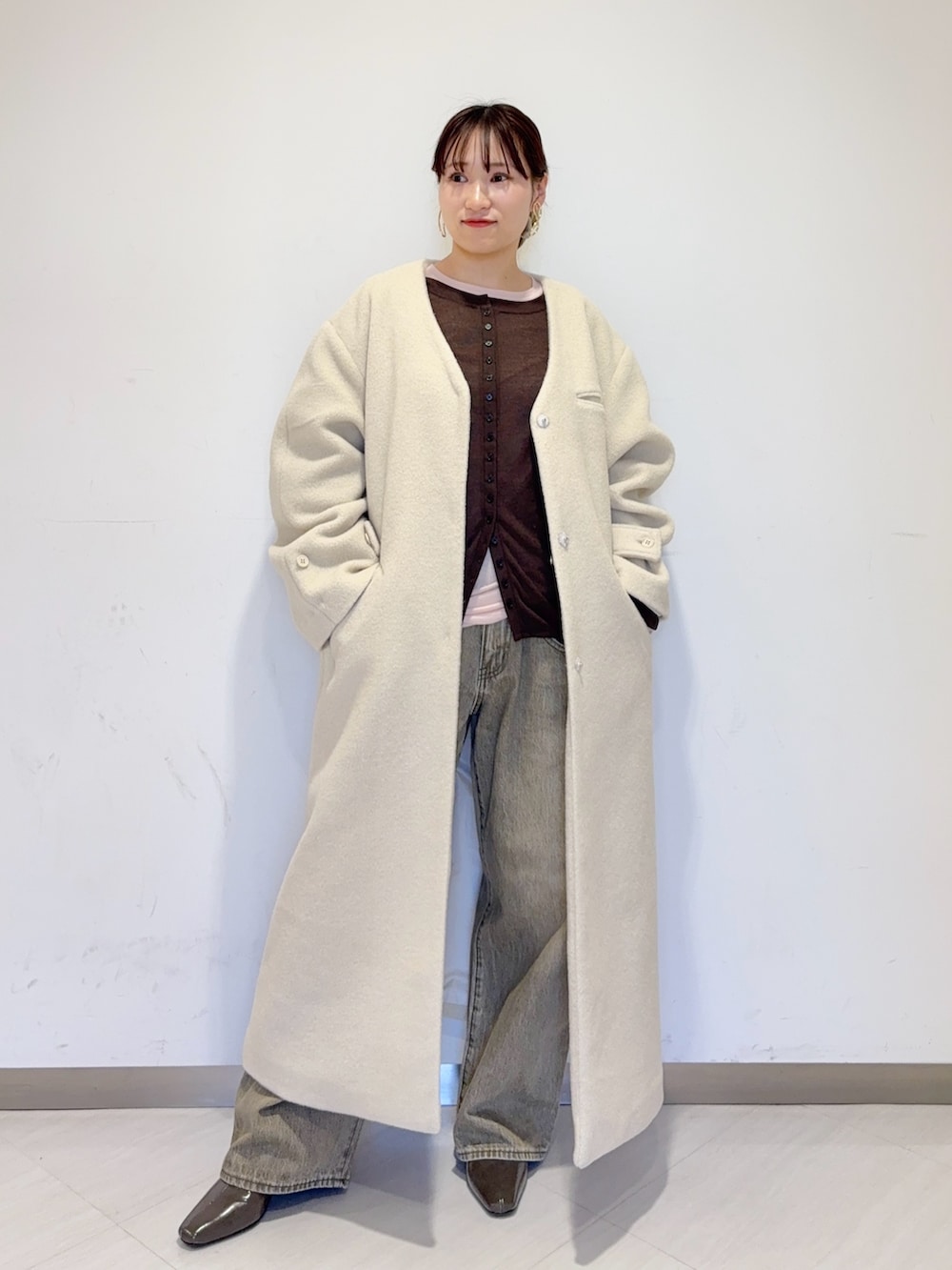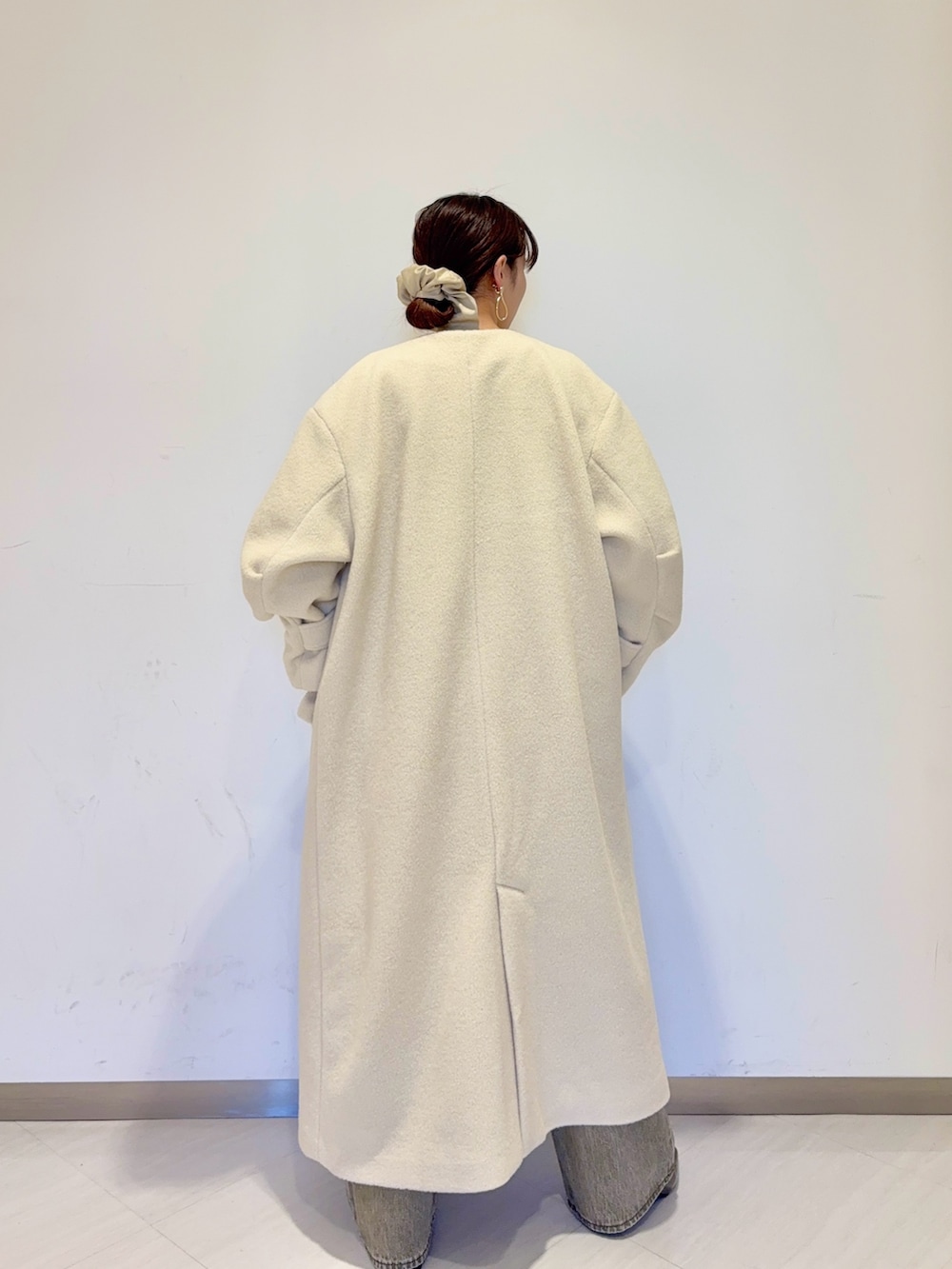 ロングコートに対し、インナーをタイトにすることで軽やかに見えるように意識しました!✨