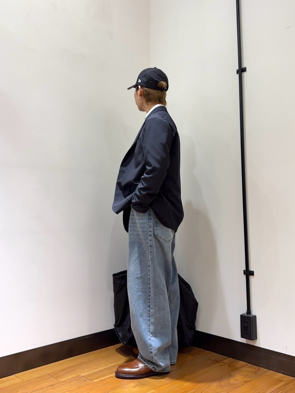 上半身と靴はカッチリとしたスタイルで、そのほかをカジュアルなアイテムでハズす、そうすることでコーデに抜け感が出て、こなれ感がUPします⤴️