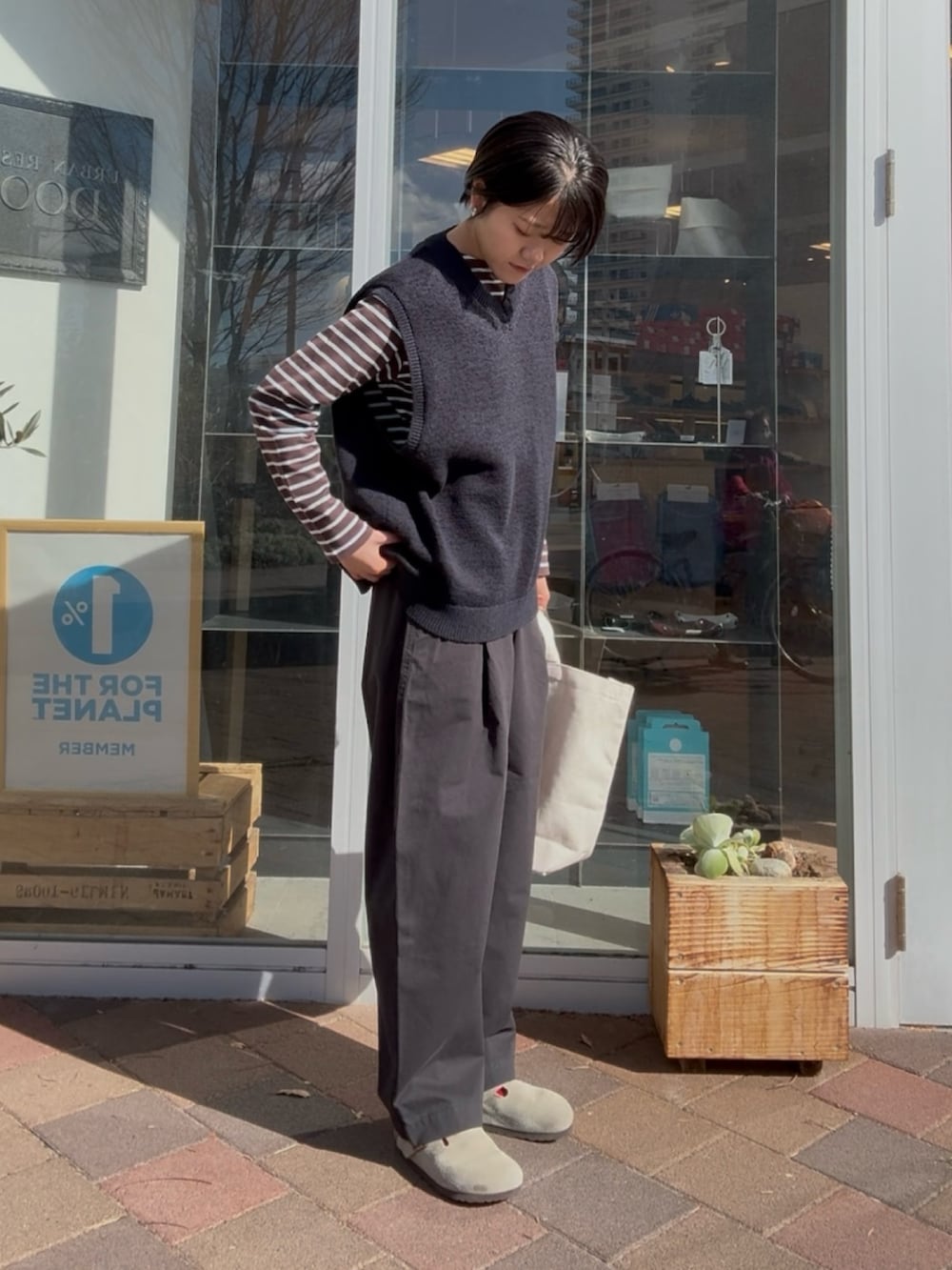 DOORSFORK&SPOON テープヤーンVネックニットベスト- 着用カラー: