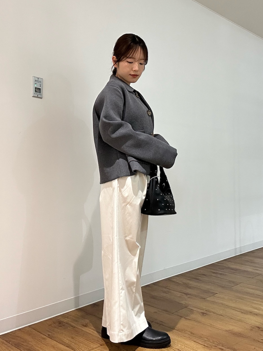 ゆったりとしたシルエットですが、丈が短めなのでスッキリとどんなボトムスとも合います!
