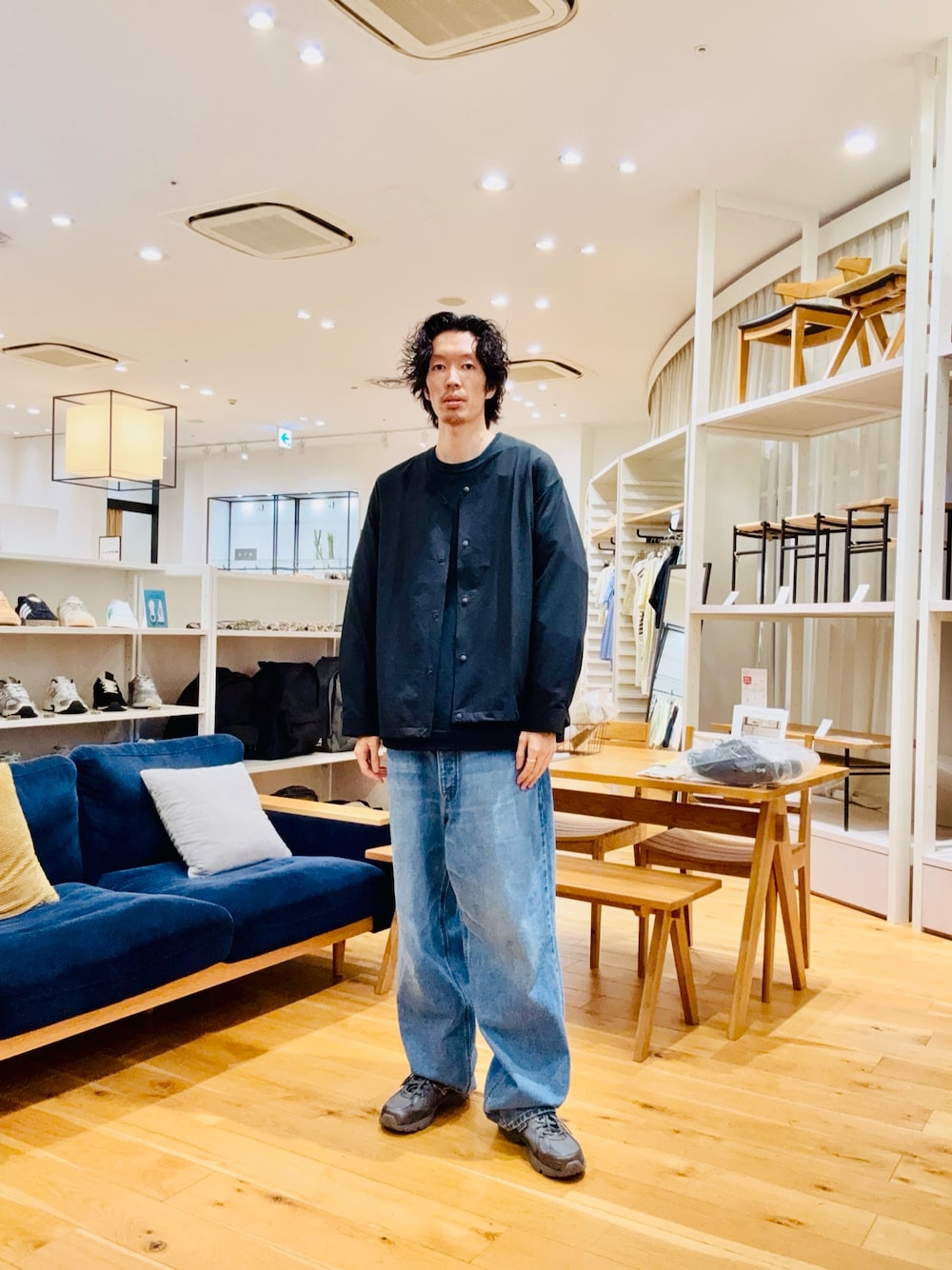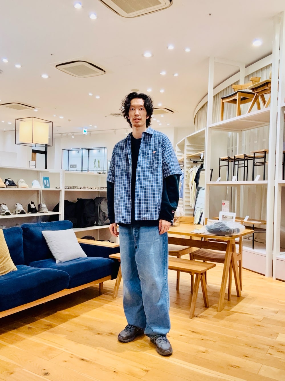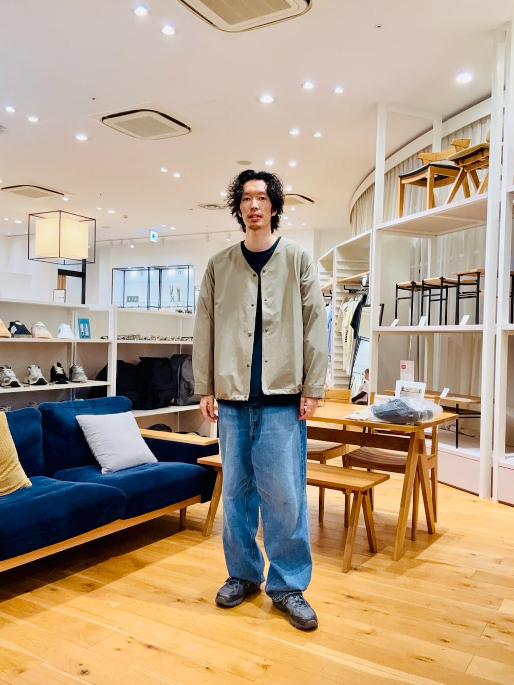 柄Tやスウェット、ニットなど、インナーの中身を選ばず着れるスタイリッシュなデザインで仕上げました。今回着用している「RIGID」は、着れば着るほどに馴染んでいく生地で作られているので、自分だけの1着になっていきます。