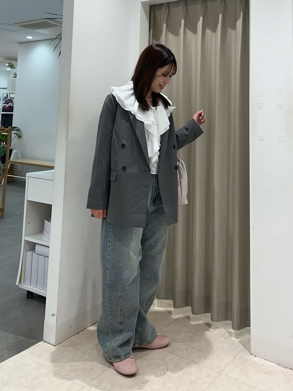 骨ストなのでフリフリのシャツは少し抵抗がありましたが、、、どうですか?いけてますか?笑