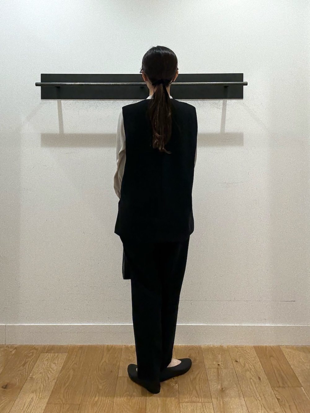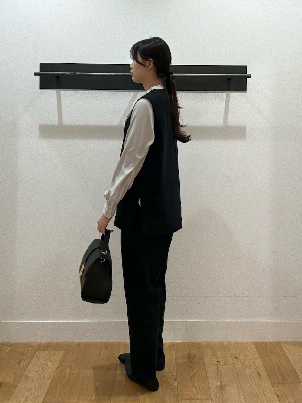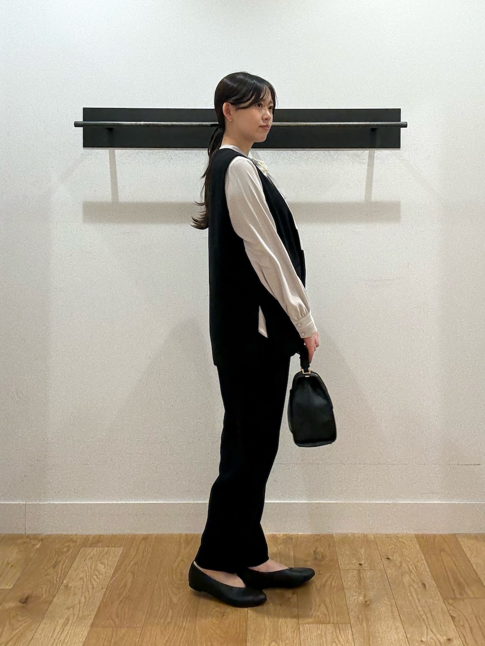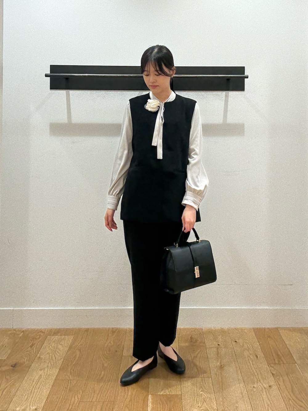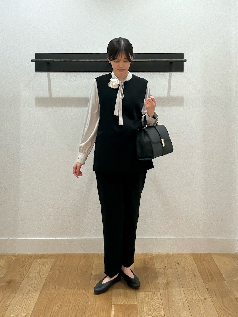 ベストにボウタイブラウスを合わせることで女性らしさをプラスしました。