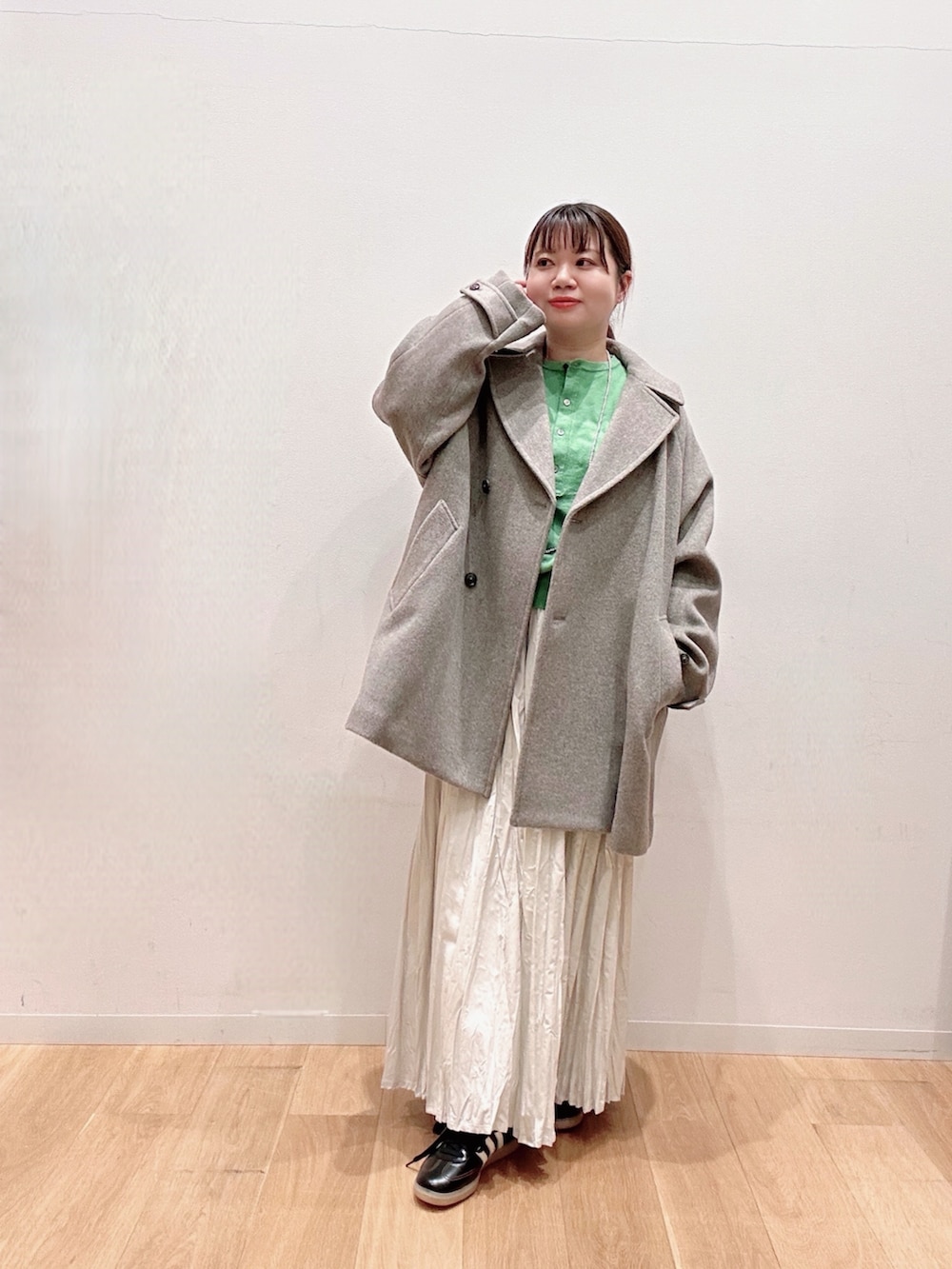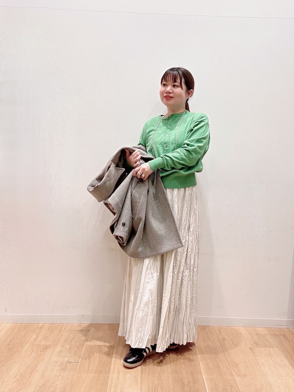 インナーのヘンリーネックはコンパクト、コンパクトな着丈でグリーンカラーが映えます💚