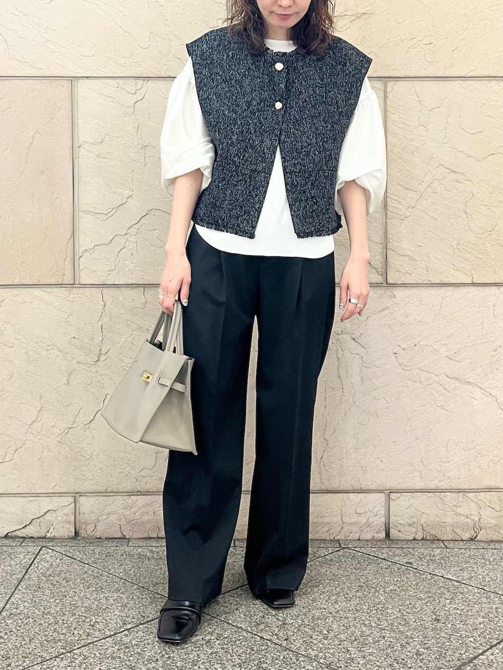 特におすすめは同シリーズで3本持っているハイウェストのボトムスと、ROSSO別注のシニヨンのベストです🫶