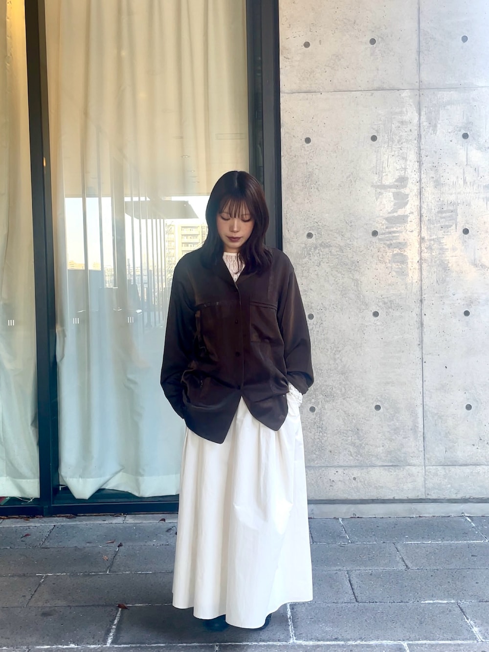 ブラウンサテンシャツのテープレース➕インナーにレーストップスを重ねるとフレンチガーリー感🤎🤍