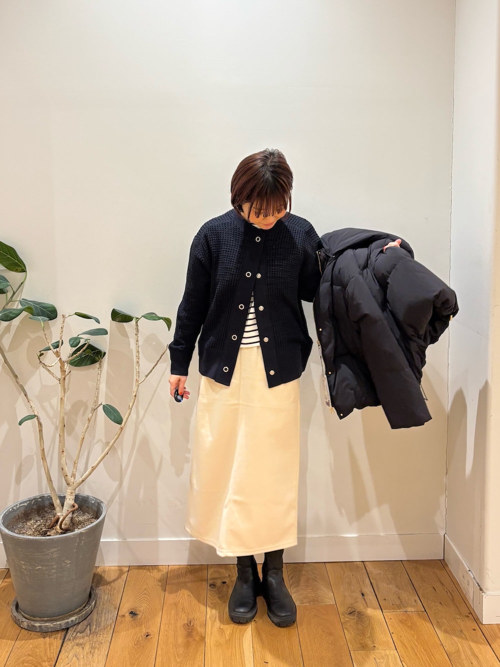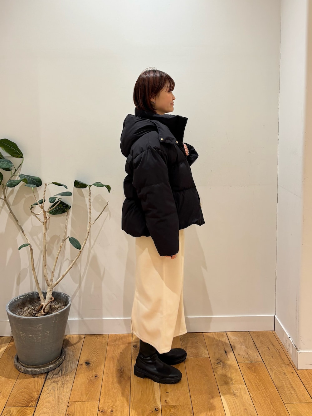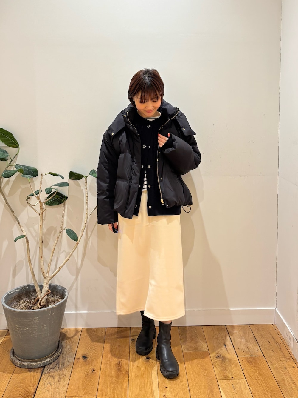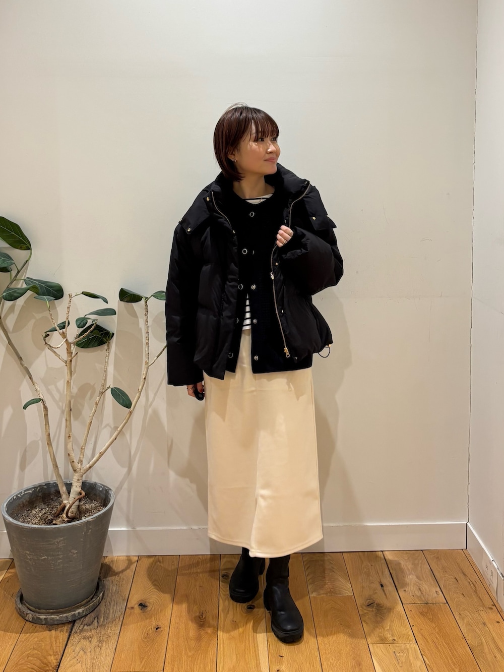 ダウンジャケットはゴールドの金具がアクセントになるのできれいめな印象になりますよね🙆♀️