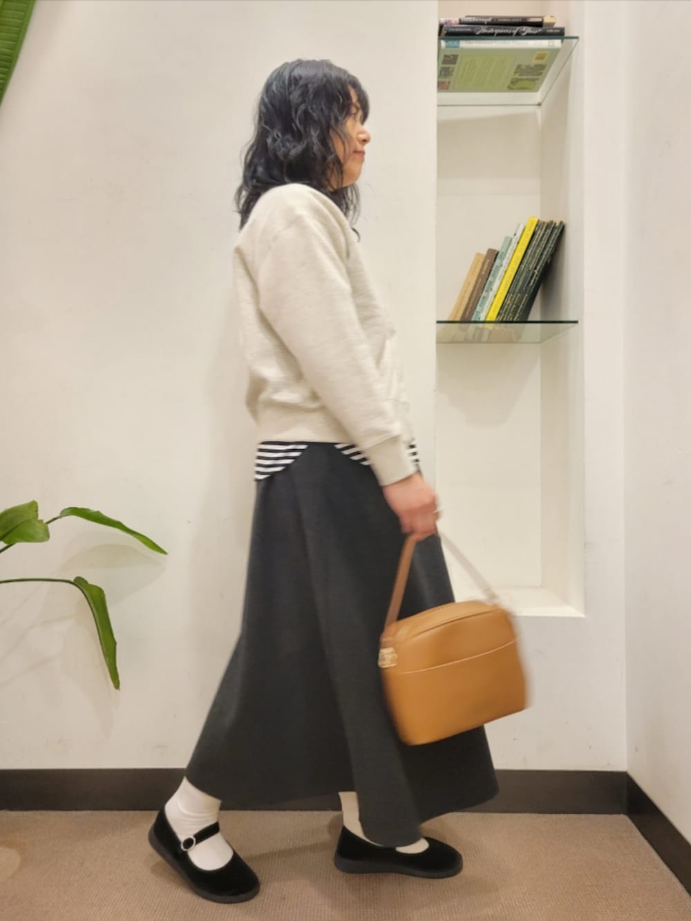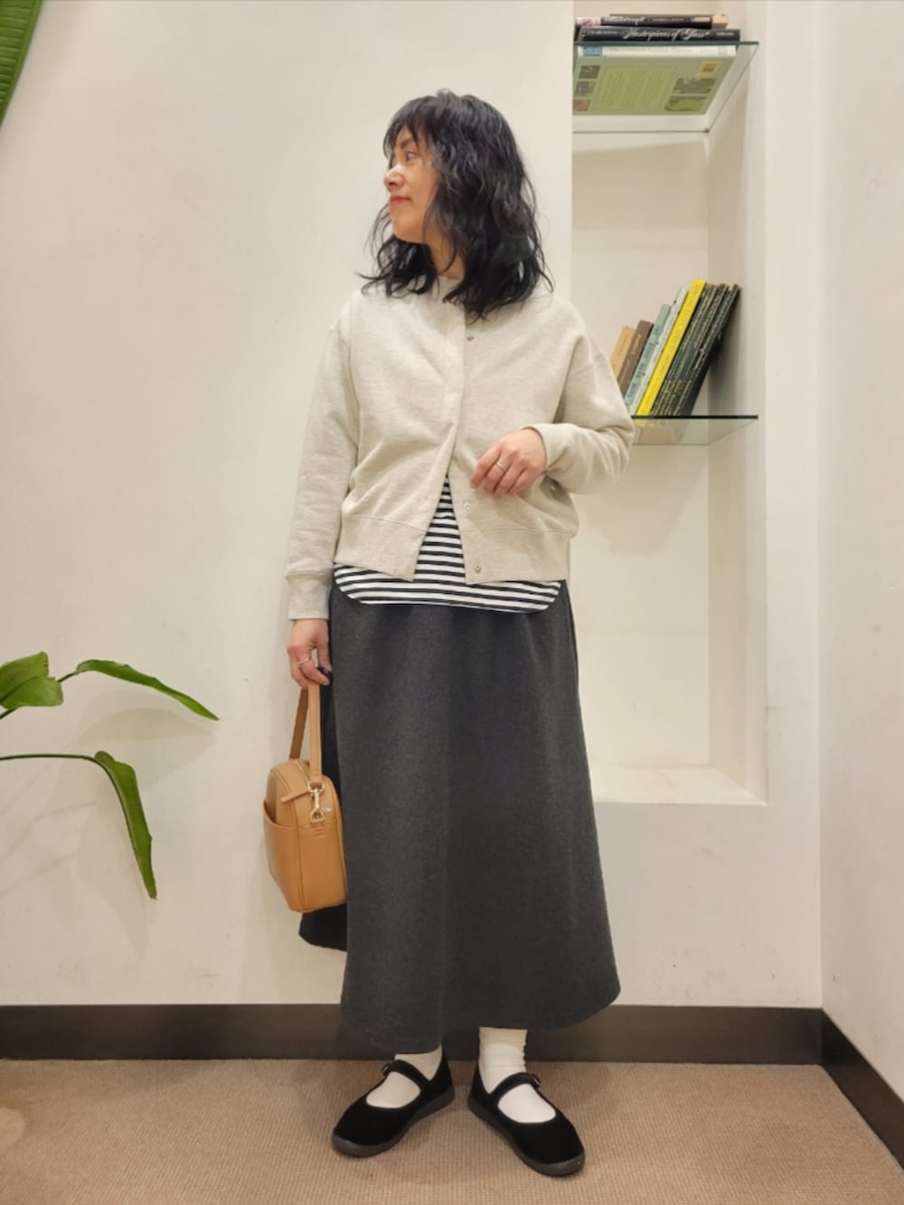 カーディガンはゆったりで