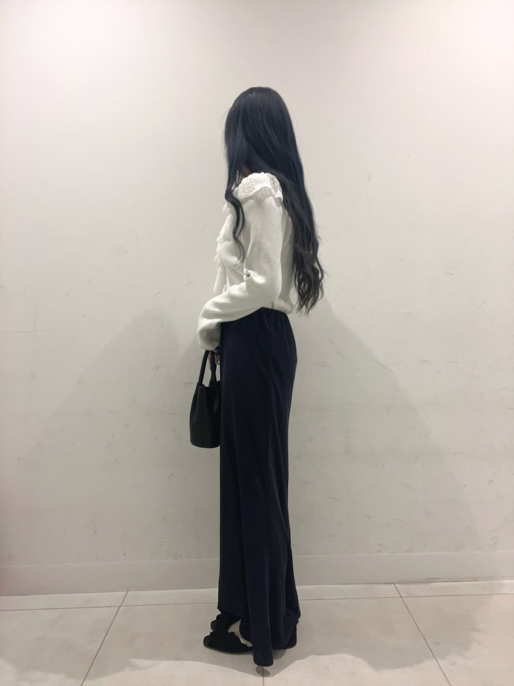 フリルトップス以外は暗めの色でまとめて大人っぽさと可愛さを両立しました♡