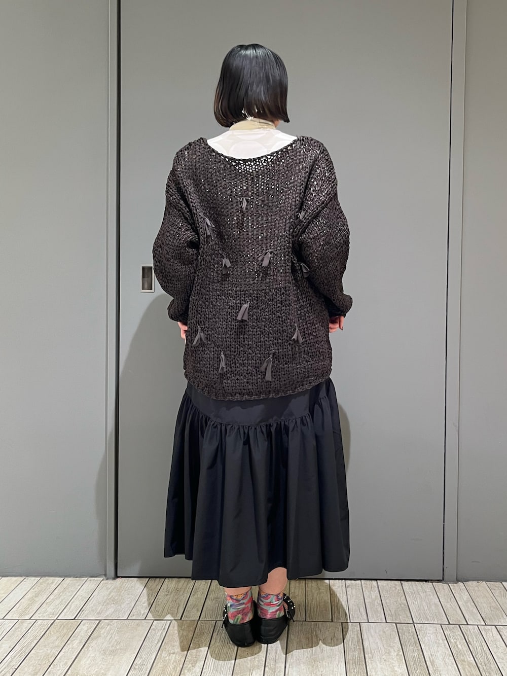 編み目が大きいので、タートルネックなどのインナーを見せることで、カラー合わせも可愛くできちまいますっ!!!