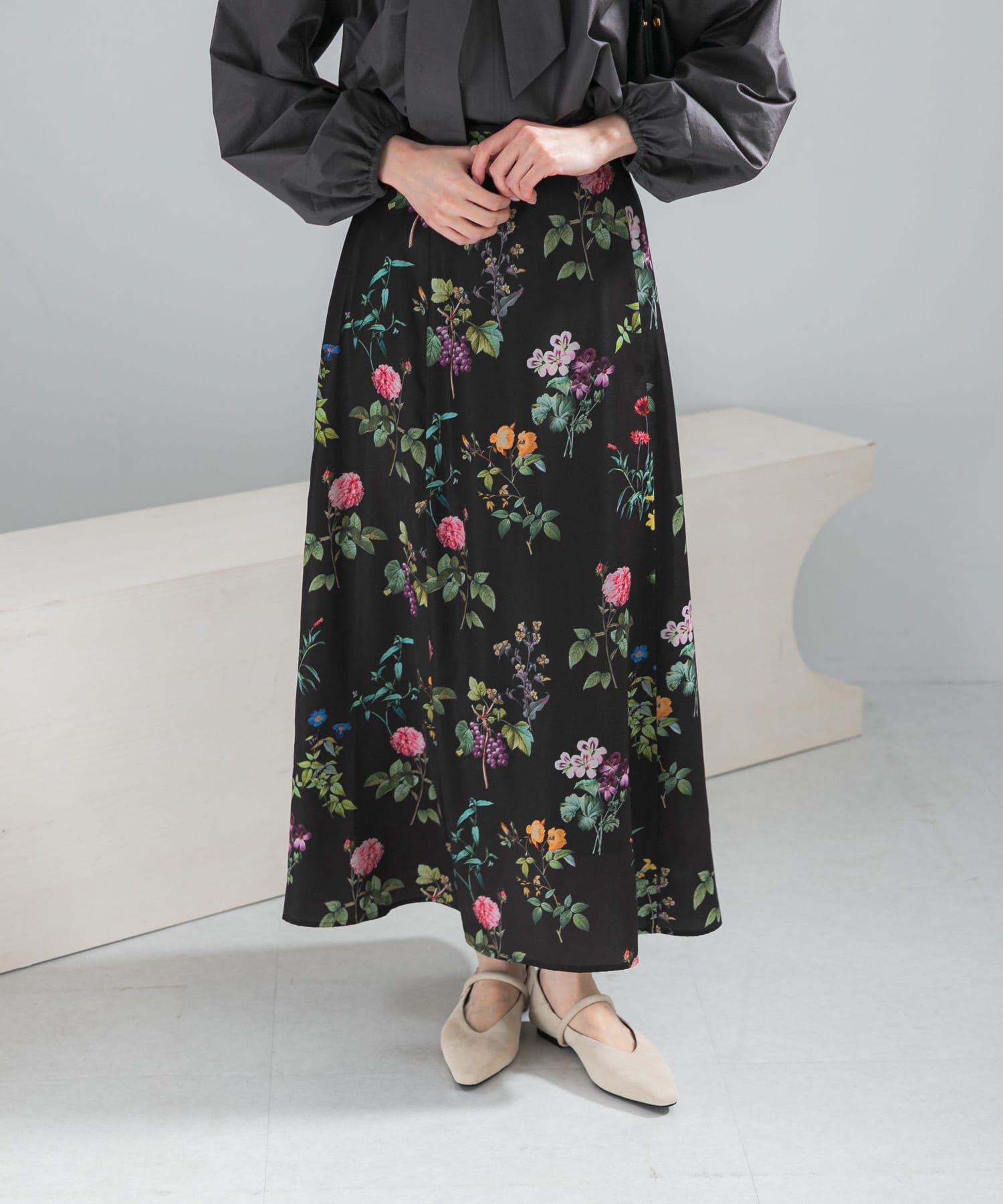 ボタニカルプリントマキシスカート