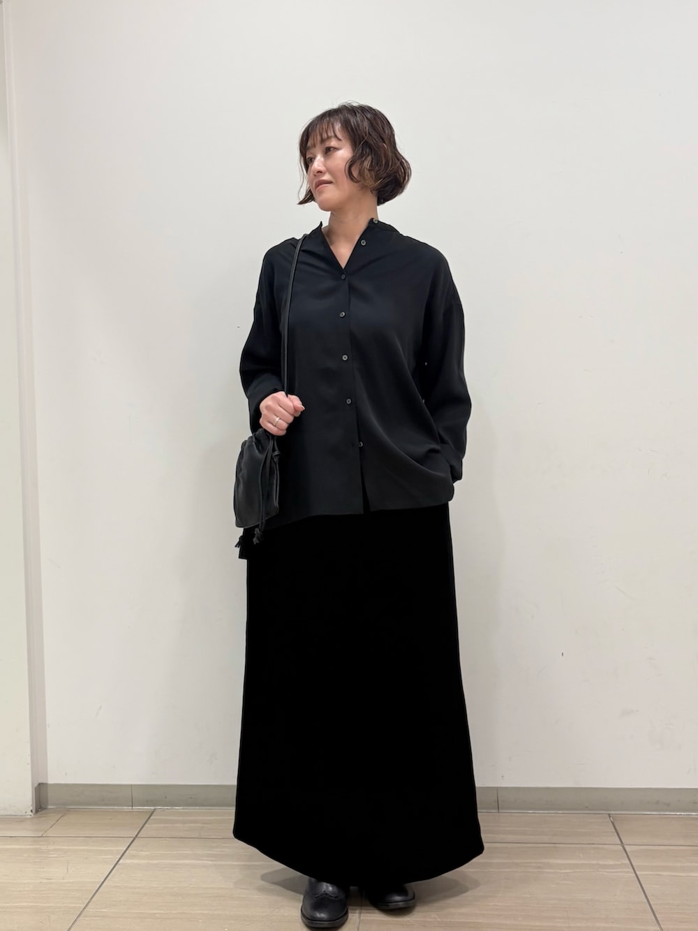 ベルベットスカートで素材感の違う黒でオールブラックでまとめてみました。