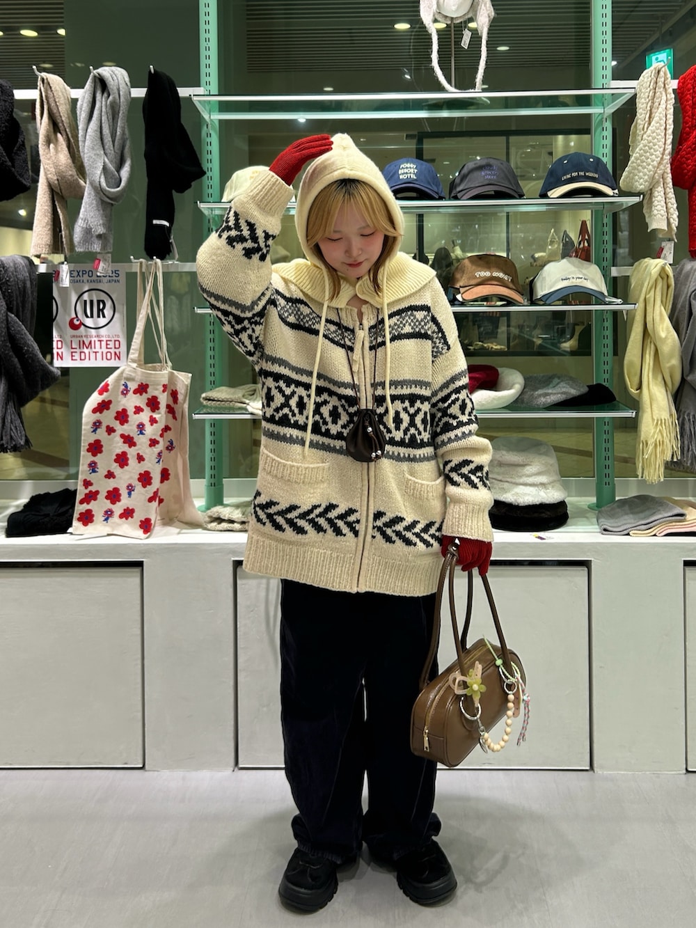 アウターの上から付けてもかわいいです!