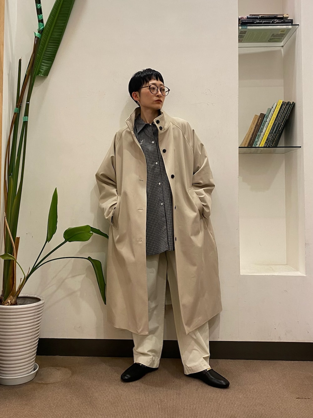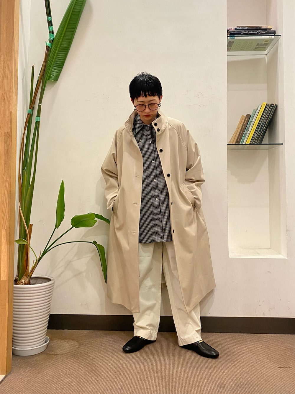 アウターは張りがありしっかりした素材なので風を通しにくく、せーたーも着込める袖幅なので意外とすぐに着ていただけるコートです!