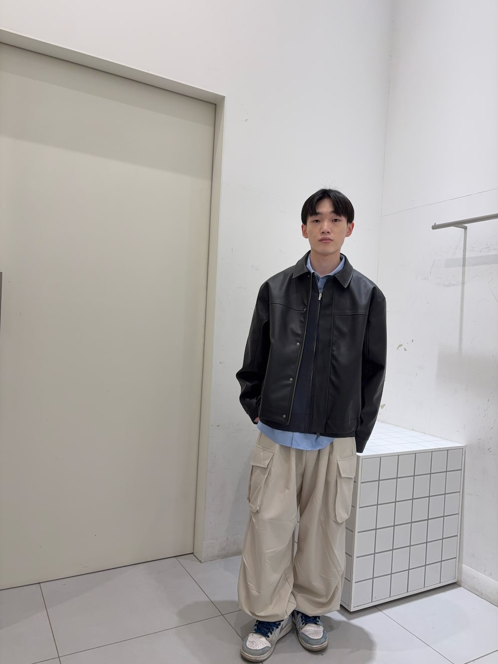 レザー調生地で仕立てた都会的デザインとなっていて身幅広めの短丈シルエットなためどんなボトムスともバランス良く決まります。