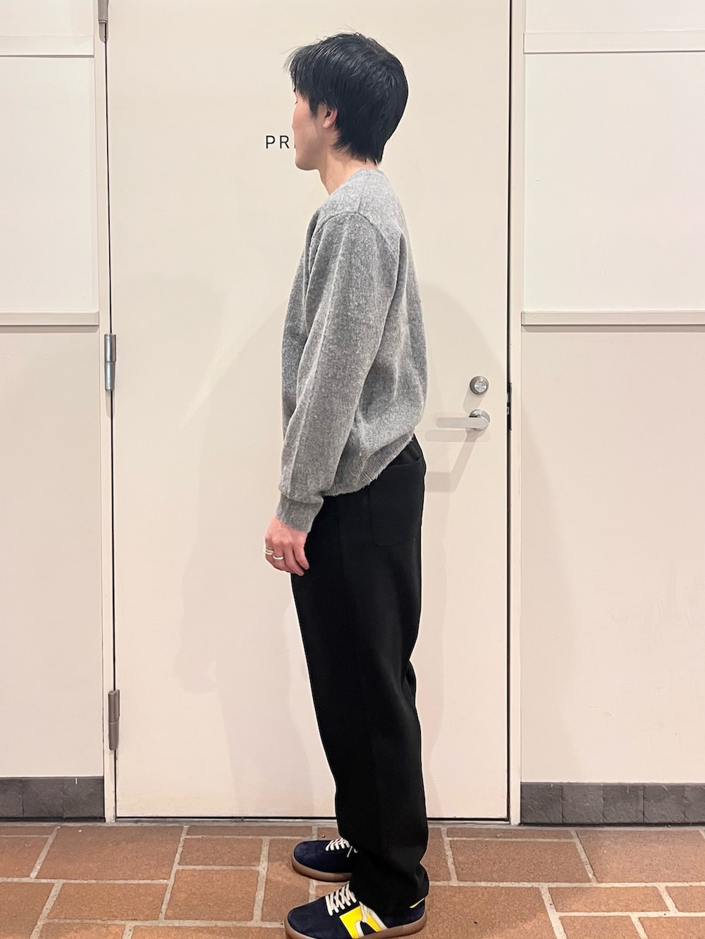 グレーのシャギーニット、サイズ感非常にハマりました。