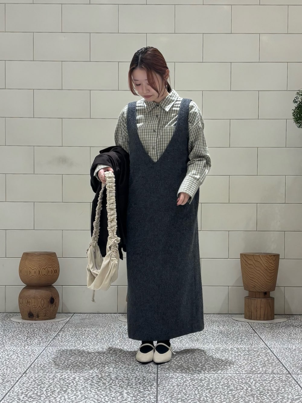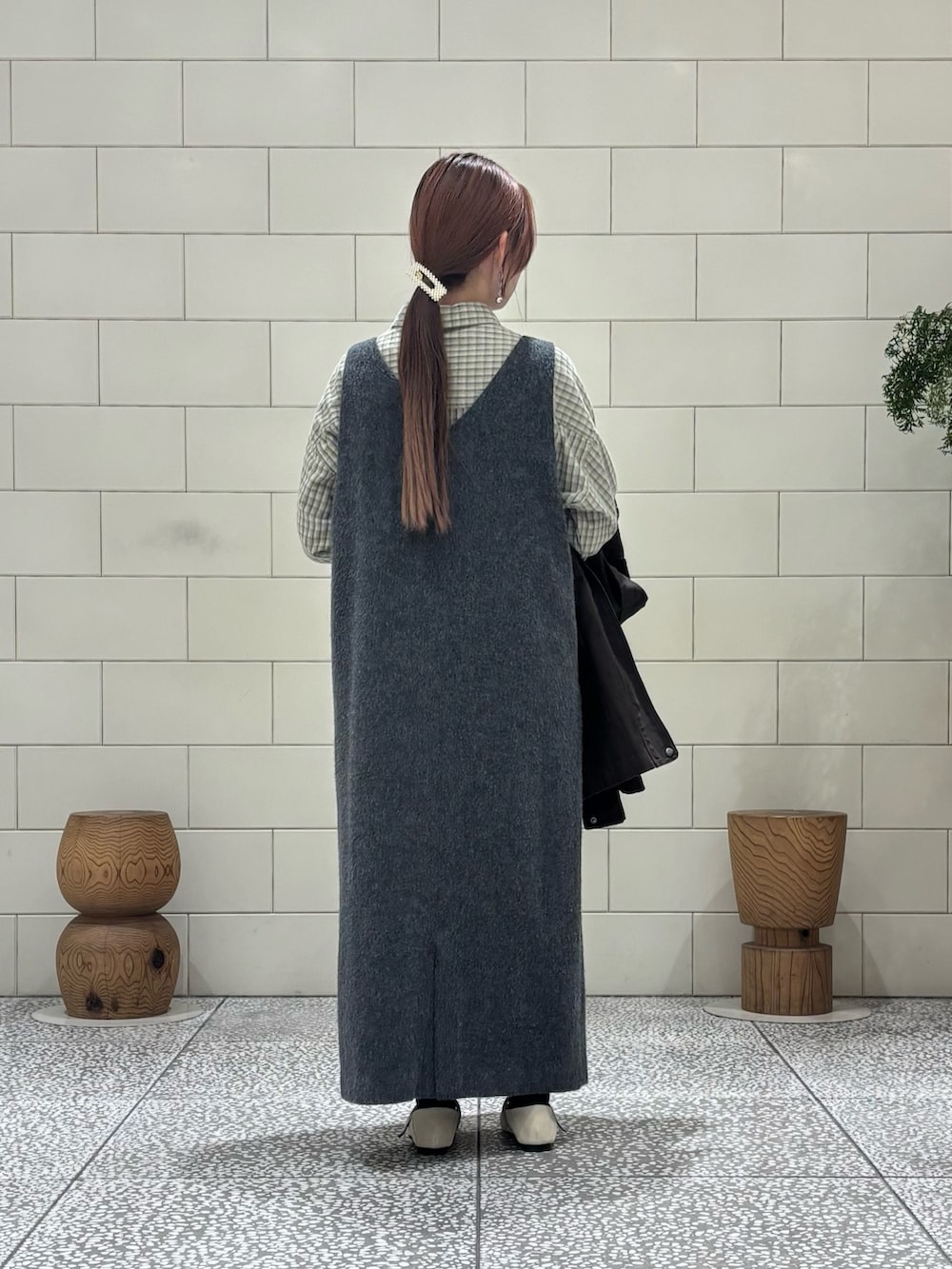 ウールシャギーのリラックスワンピースです。ゆったりとしたシルエットが特徴で、シャツやコンパクトなトップスと重ねるとバランスがいいです。