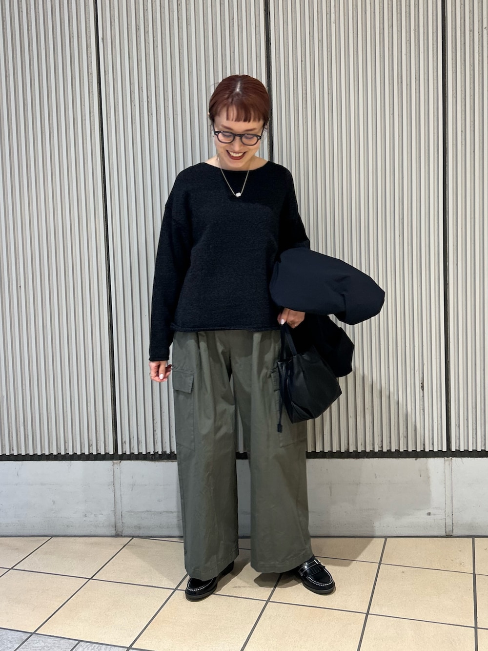 シンプルだけどシルエットがとてもキレイなかぐれのニットと、おすすめのユーティリティパンツを合わせてみました。