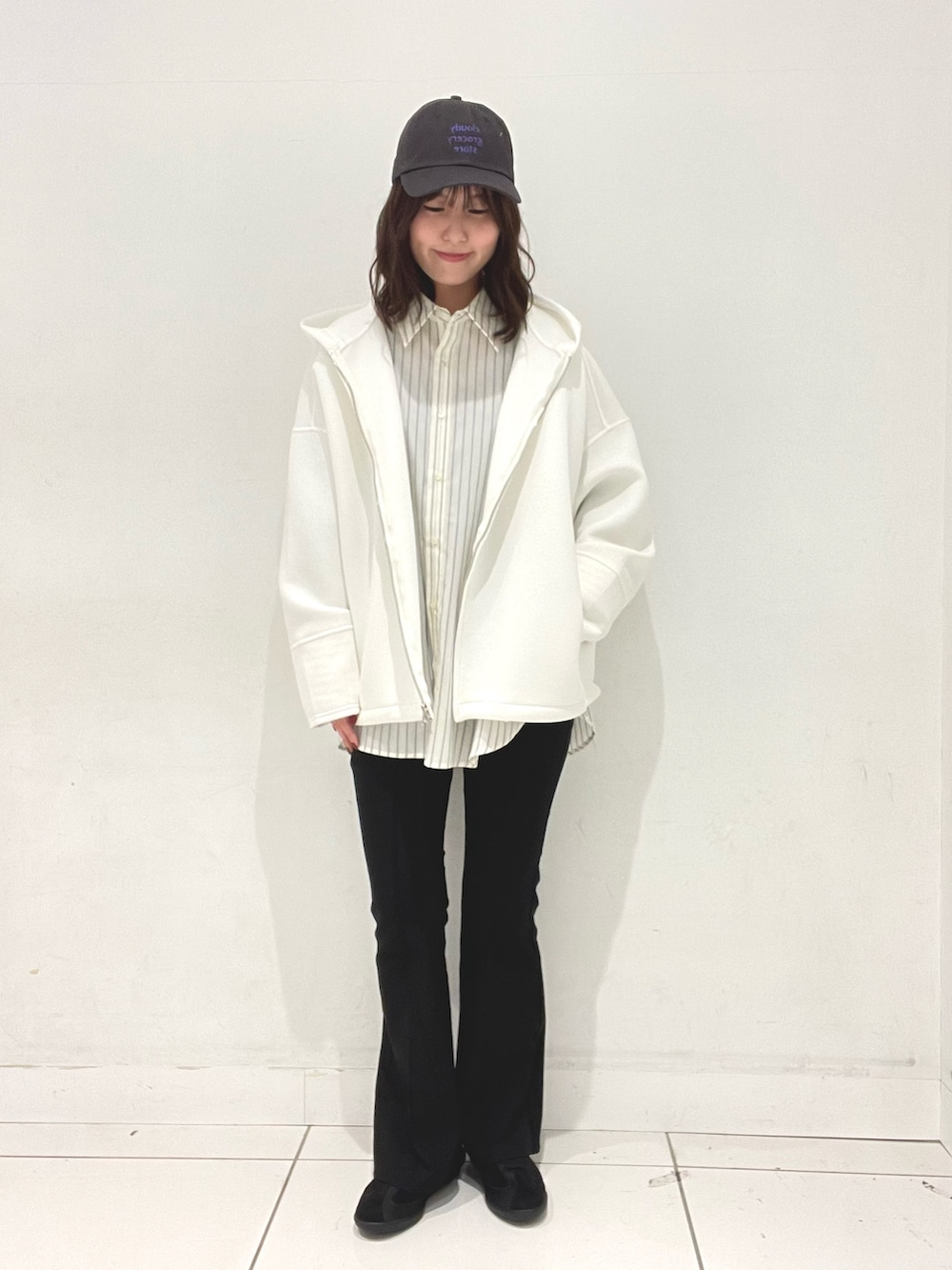 大きめフーディーにタイトめのフレアパンツを合わせるとバランス◎