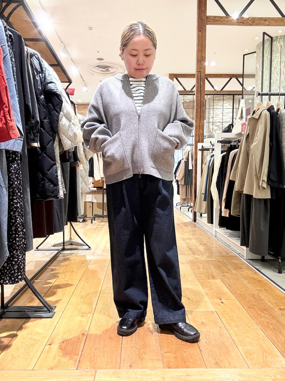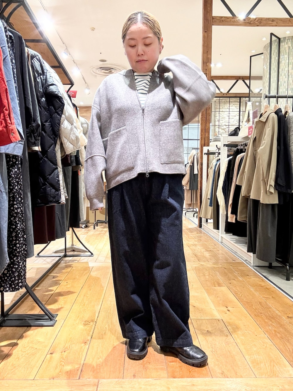 落ち着いたグレーのニットブルゾンを👏