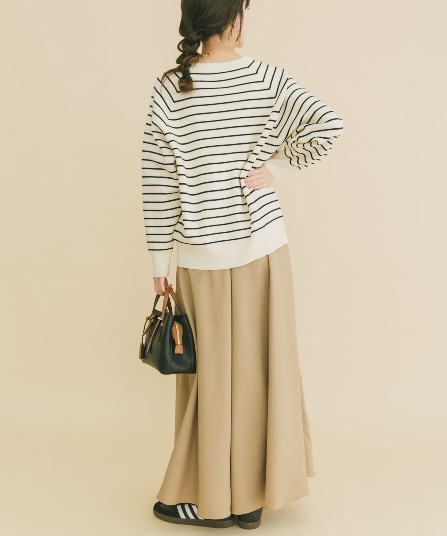 今回はニットのみ着用!毛玉になりにくそうな素材感でスウェットの用に楽ちんな着心地です◎!
