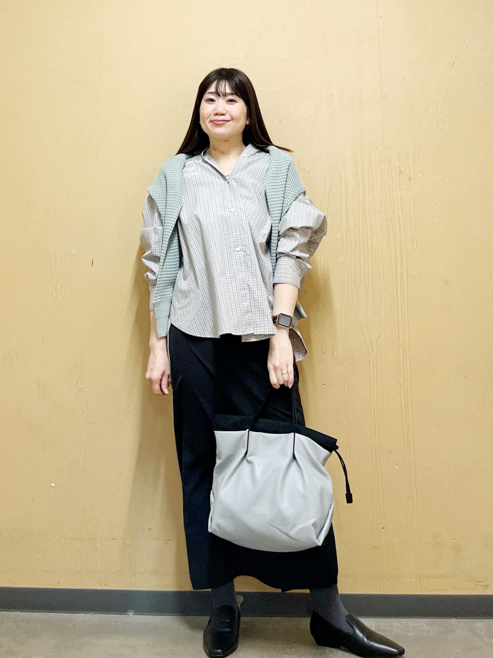 これから発売のカーディガンを着ました!