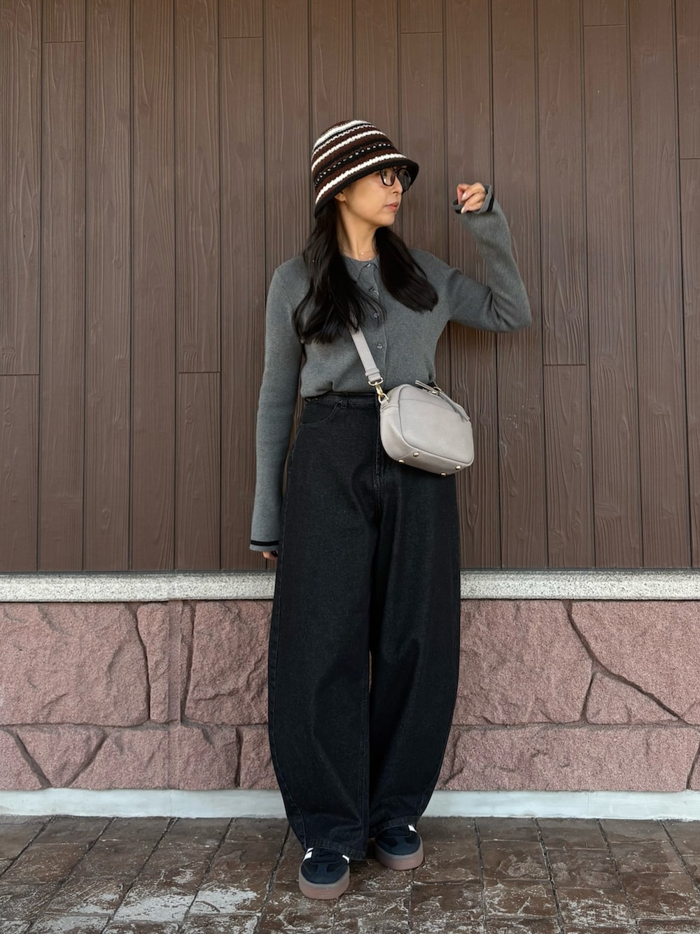 デニムはコクーンシルエットで体型を拾わず、こなれ感たっぷり。