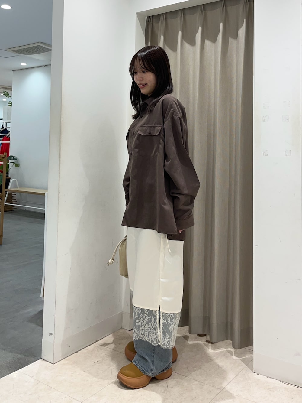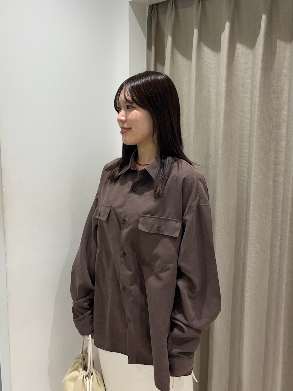 今回はメンズのシャツと合わせてカジュアルに。落ち感がきれいでマットな素材のシャツはきれいめでもカジュアルでもマルチに活躍してくれる優秀アイテムです◎