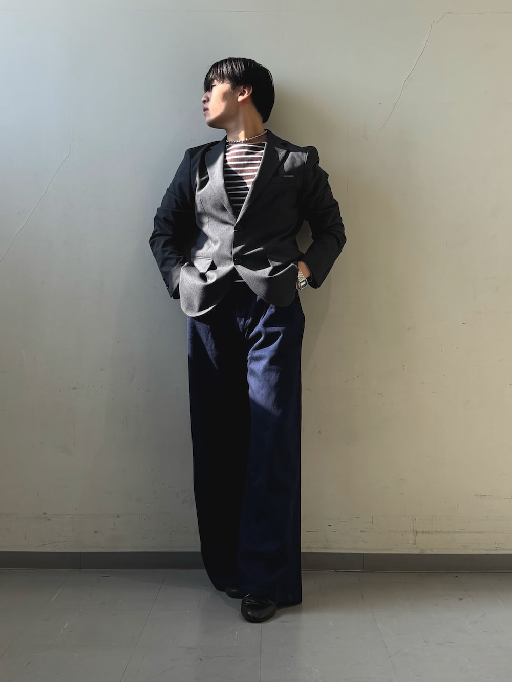 ⭐︎デニムとジャケットの相性はとても良いです!そこにボーダーを入れることでかしこまることなくカジュアルなコーデにすることができます!