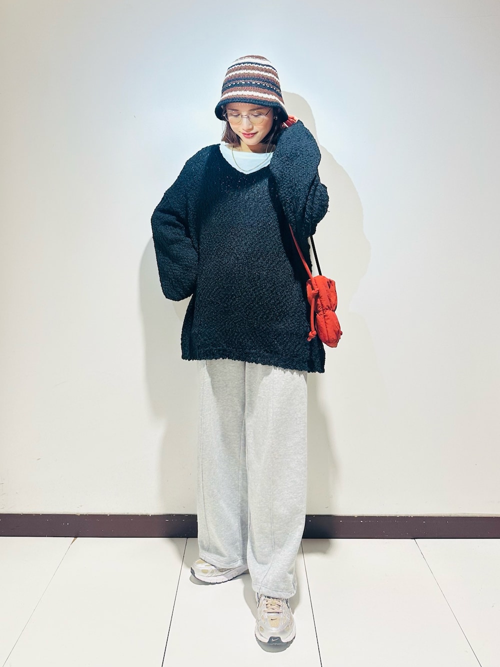赤の色糸が映えるニット✨️