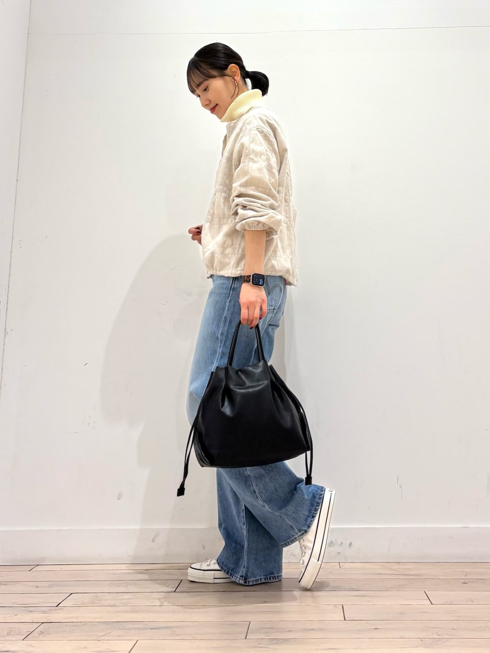 まだまだ寒いのでタートルを重ね着して温かく♡