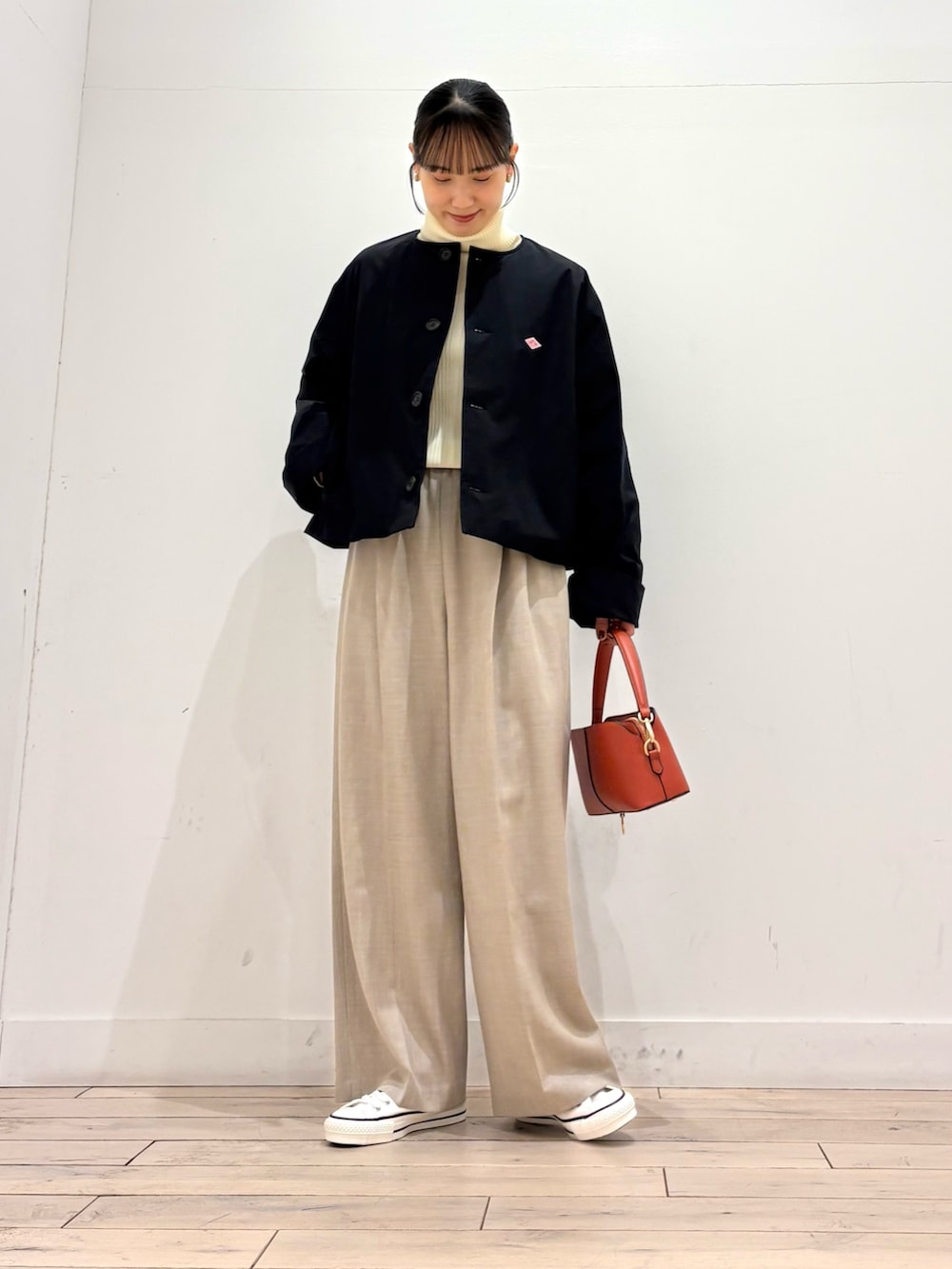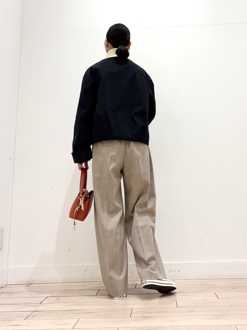 ワイドシルエットでショート丈のジャケットは自然にスタイルアップしてくれる一着です👏