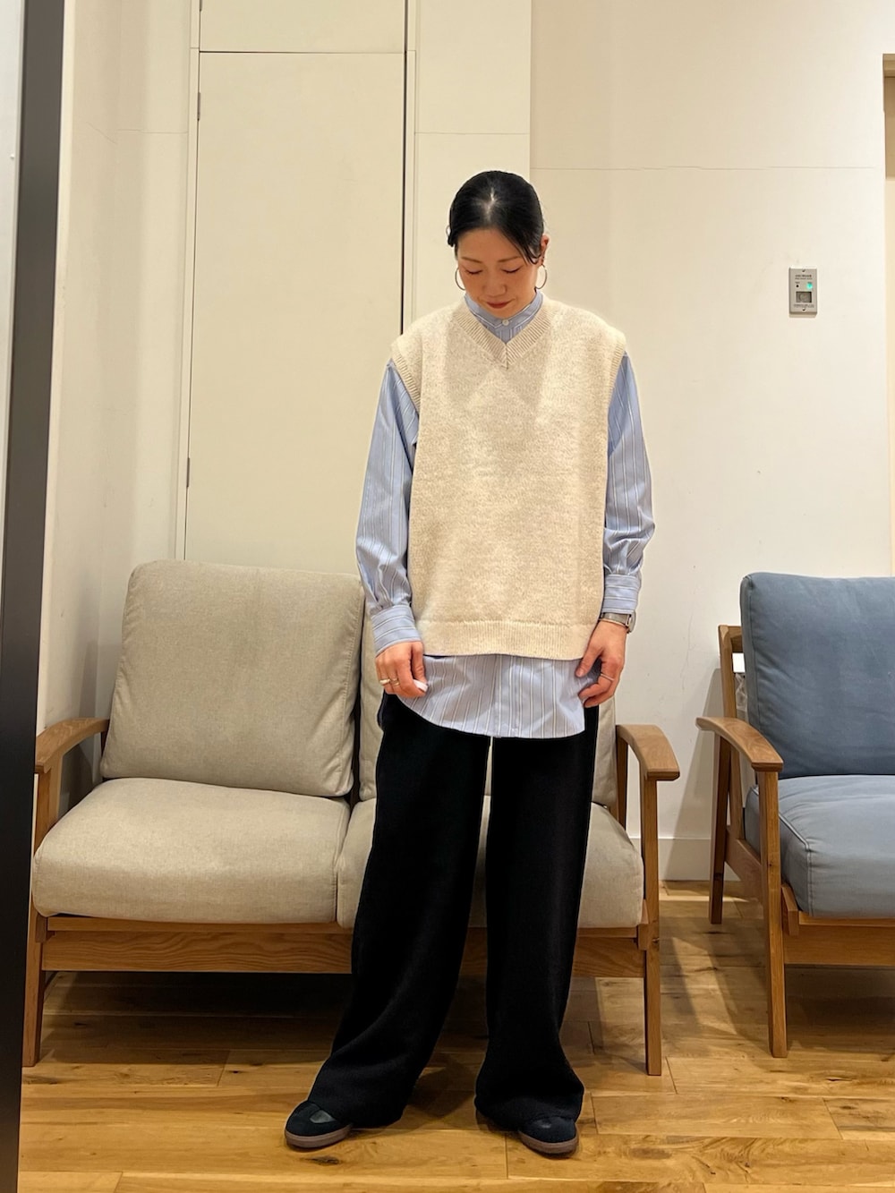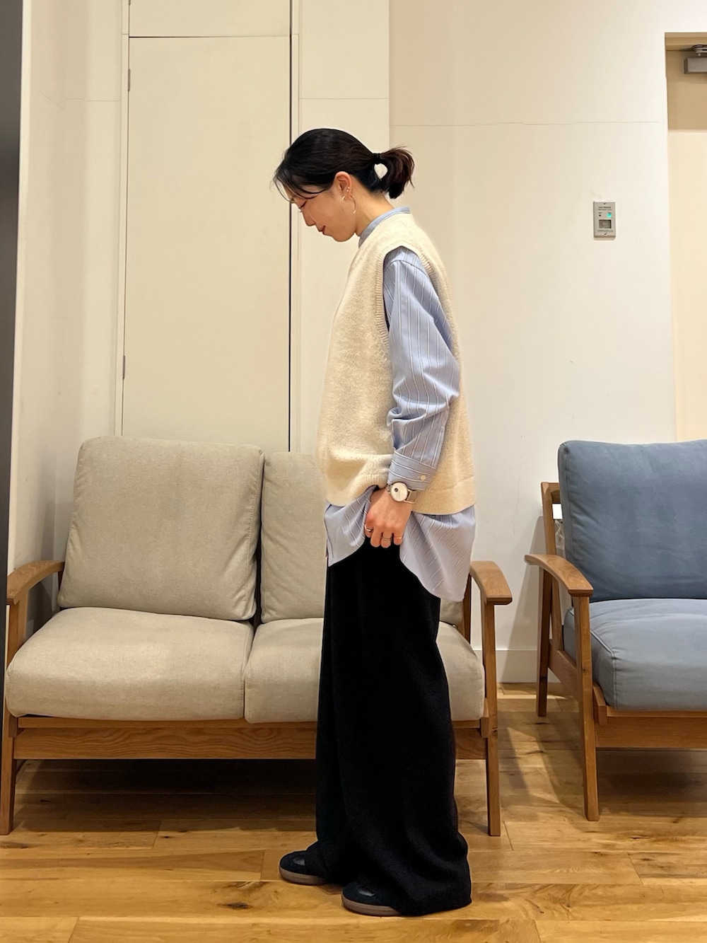 DOORSFORK&SPOON テープヤーンVネックニットベスト- 着用カラー: