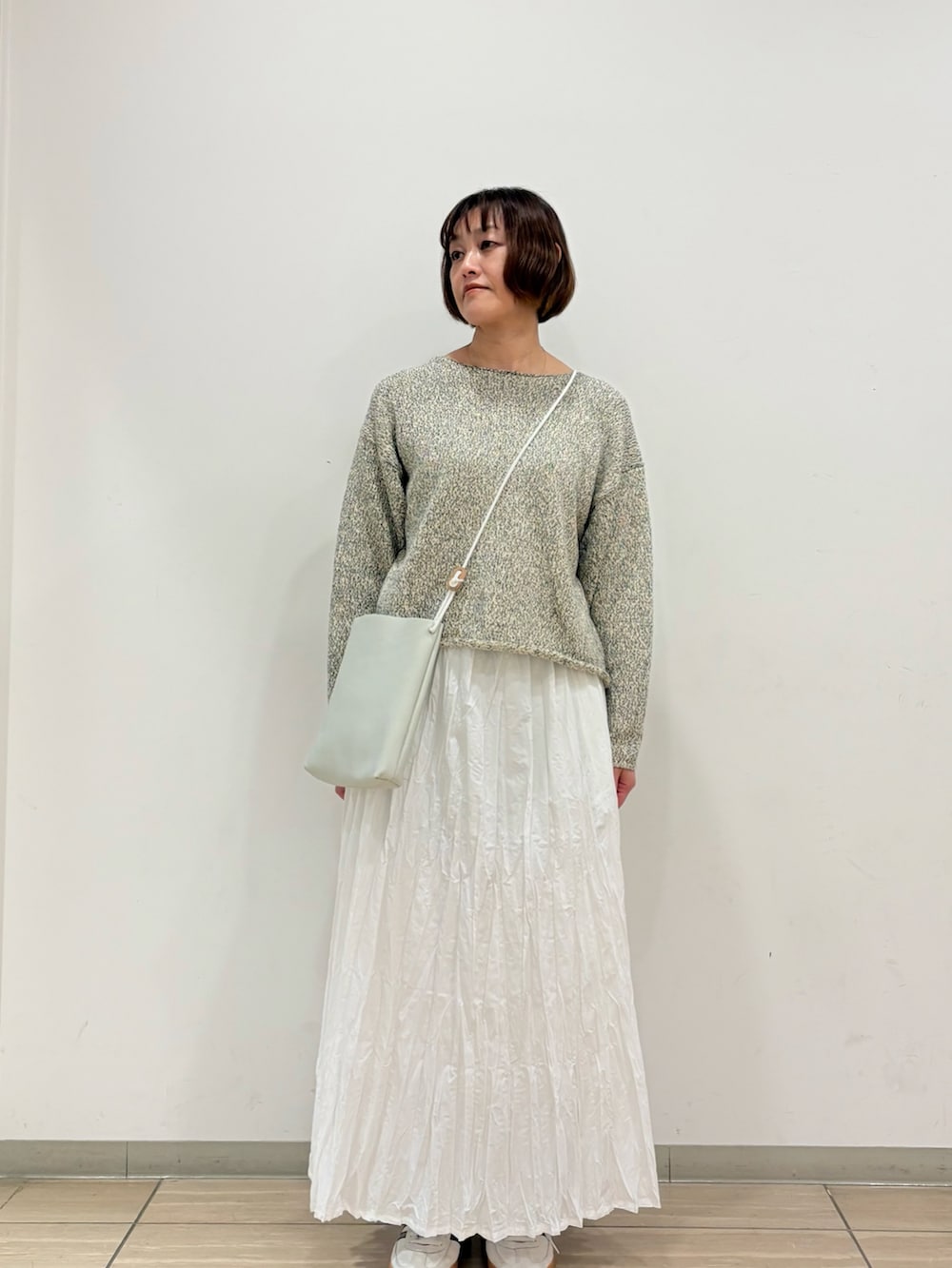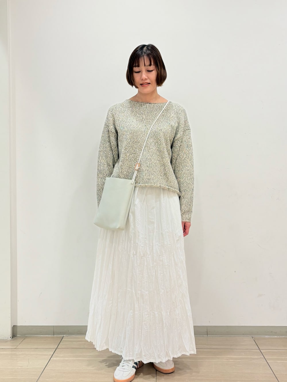 淡めトーンのコーディネート。