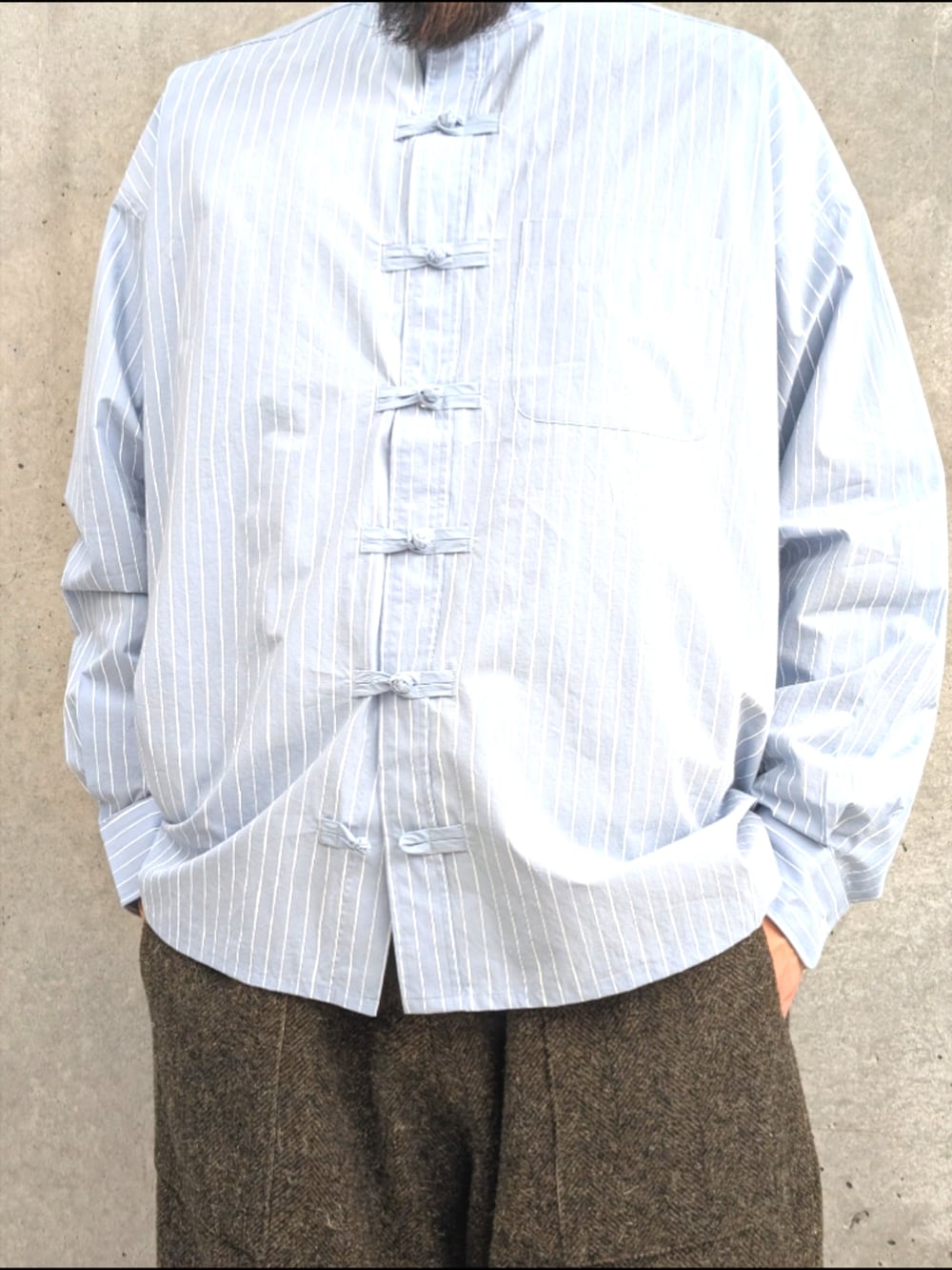 今までのコレクションには無かったチャイナシャツのデザインを採用しビックシルエットに仕上がっています。